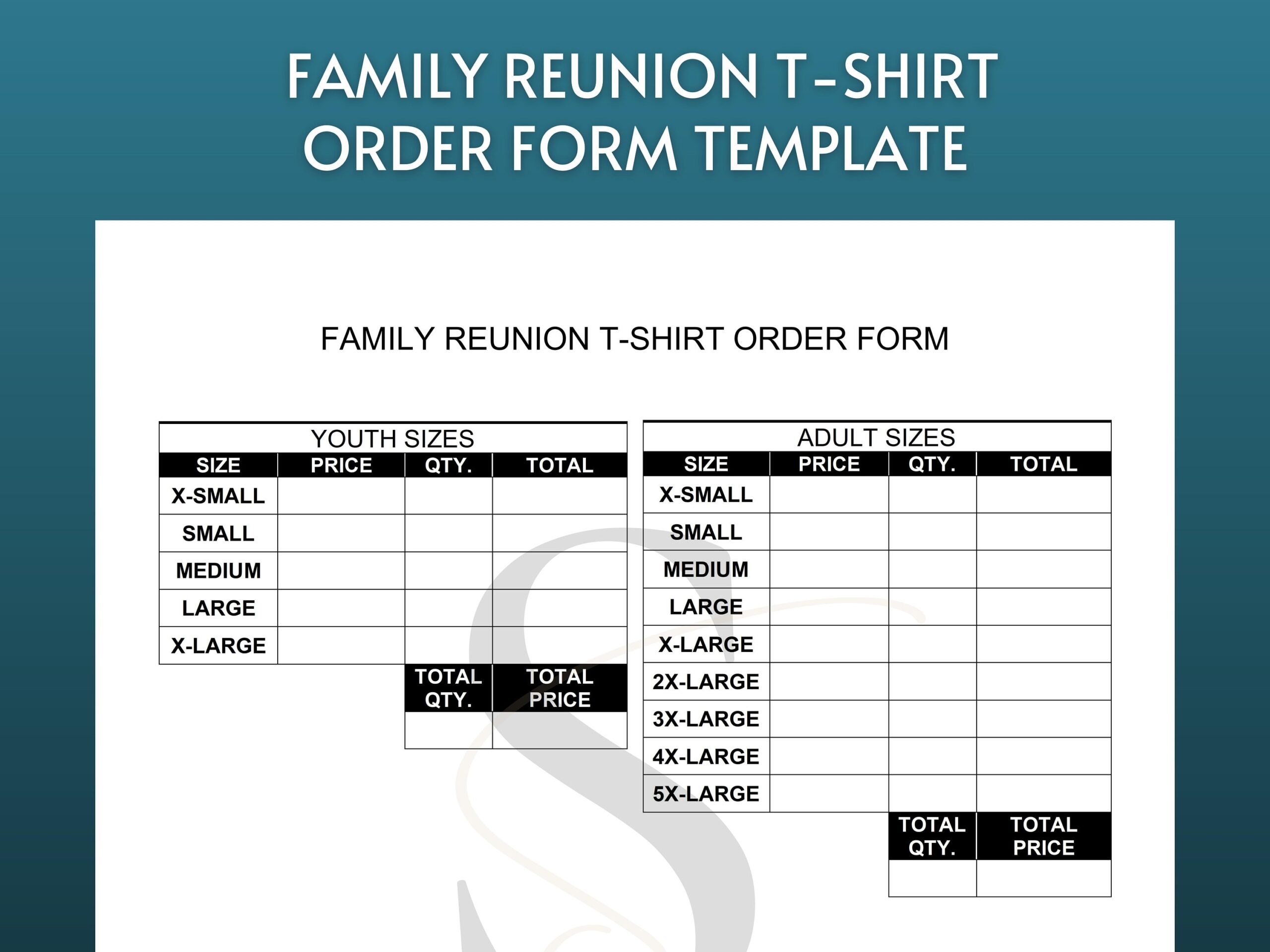 Printable Family Reunion T shirt Order Form Template Digital Download Editable Fillable Family T shirt Order Form PDF Instant Download Etsy