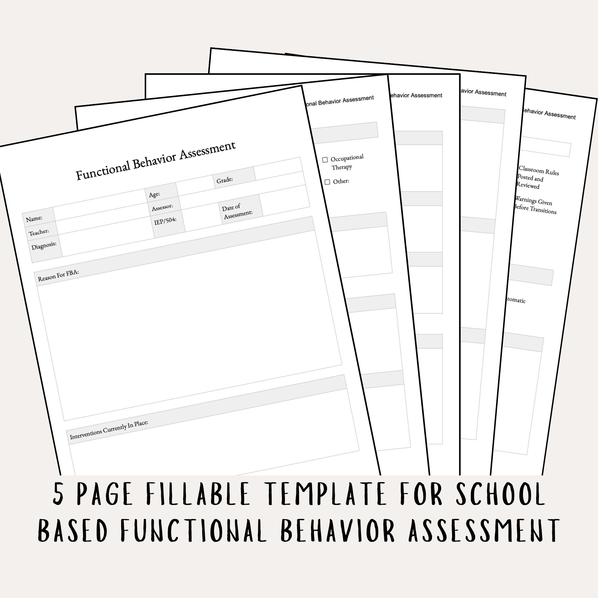 FBA Template School ABA Functional Behavior Assessment Fillable