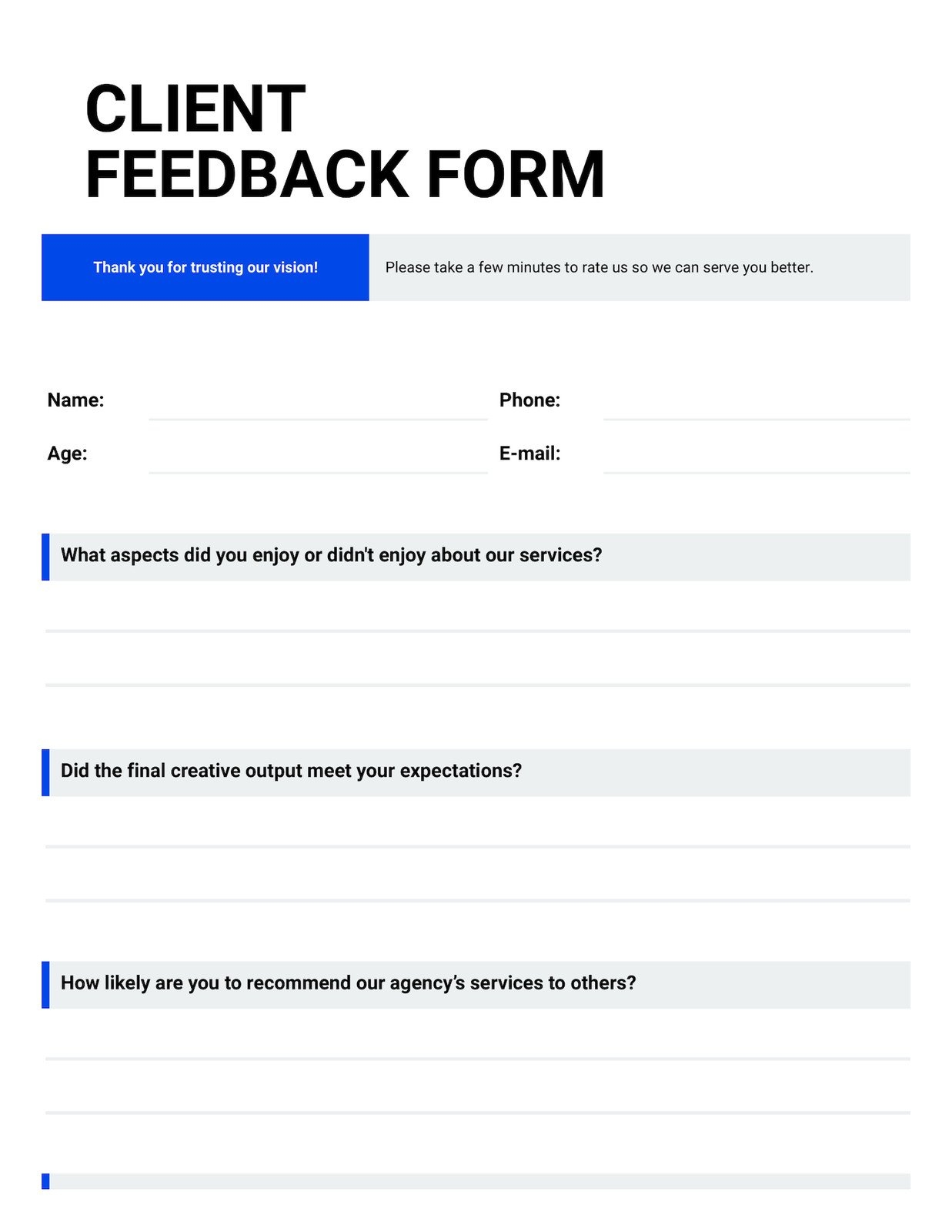 Using a free printable feedback form template saves you time and effort. Simply download the template, fill in the relevant details, and you’re ready to start collecting feedback.