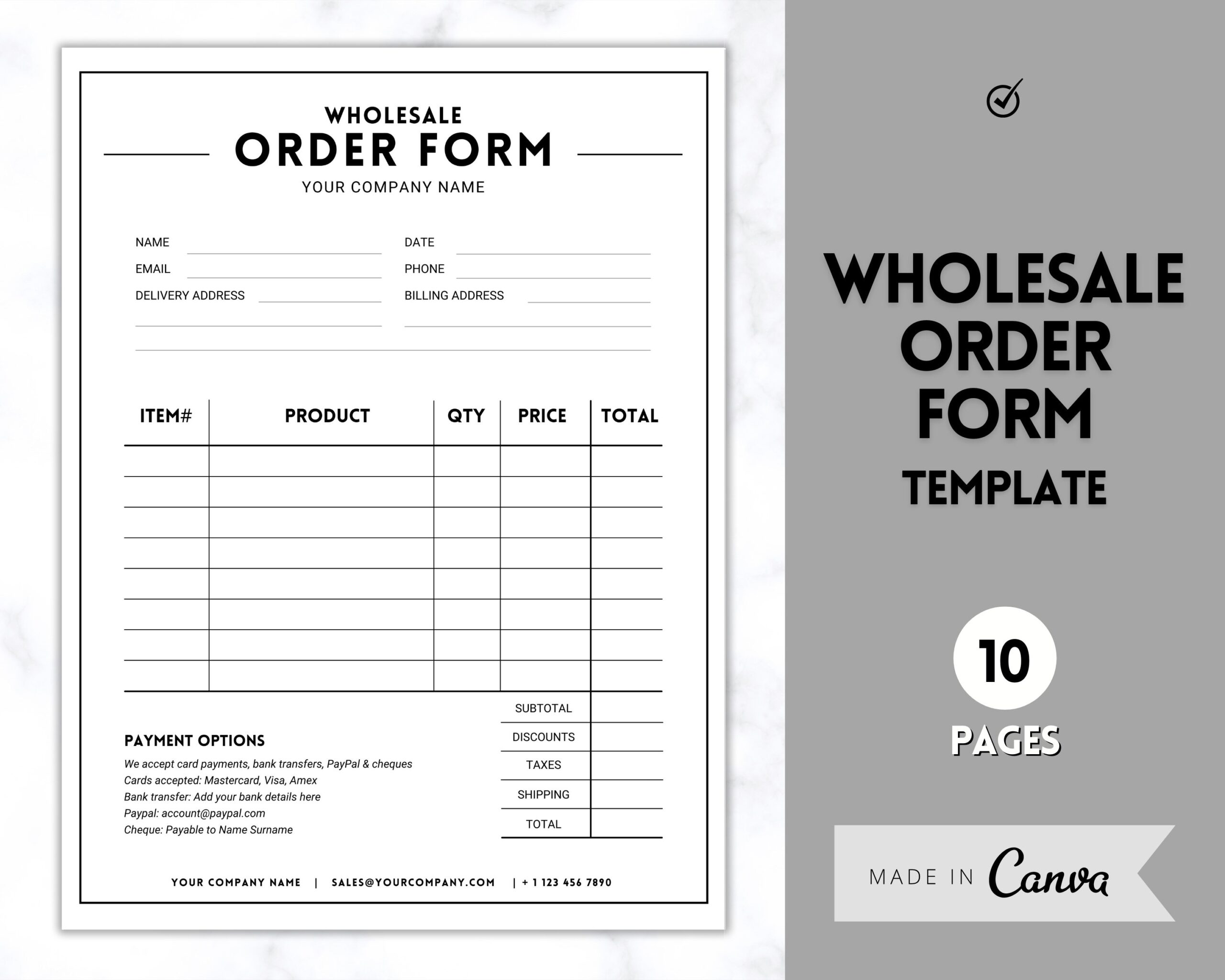 Wholesale Order Form Template Editable Canva Template Printable Small Business Invoice Customer Sales Receipt Form Price List Linesheet Etsy