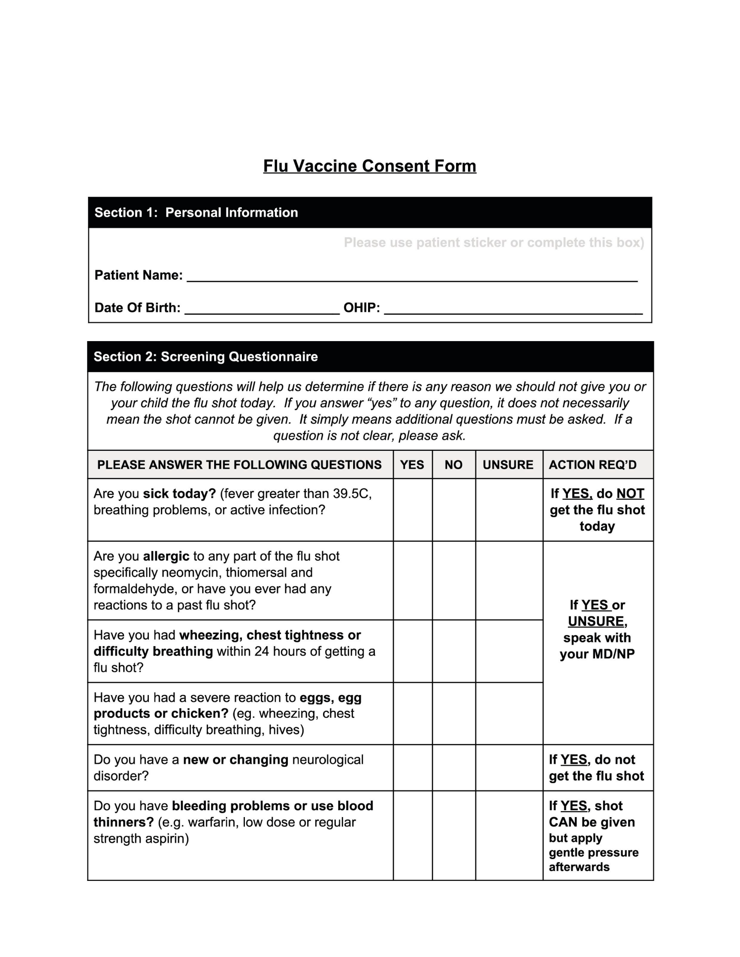 Free Printable Flu Vaccine Consent Form