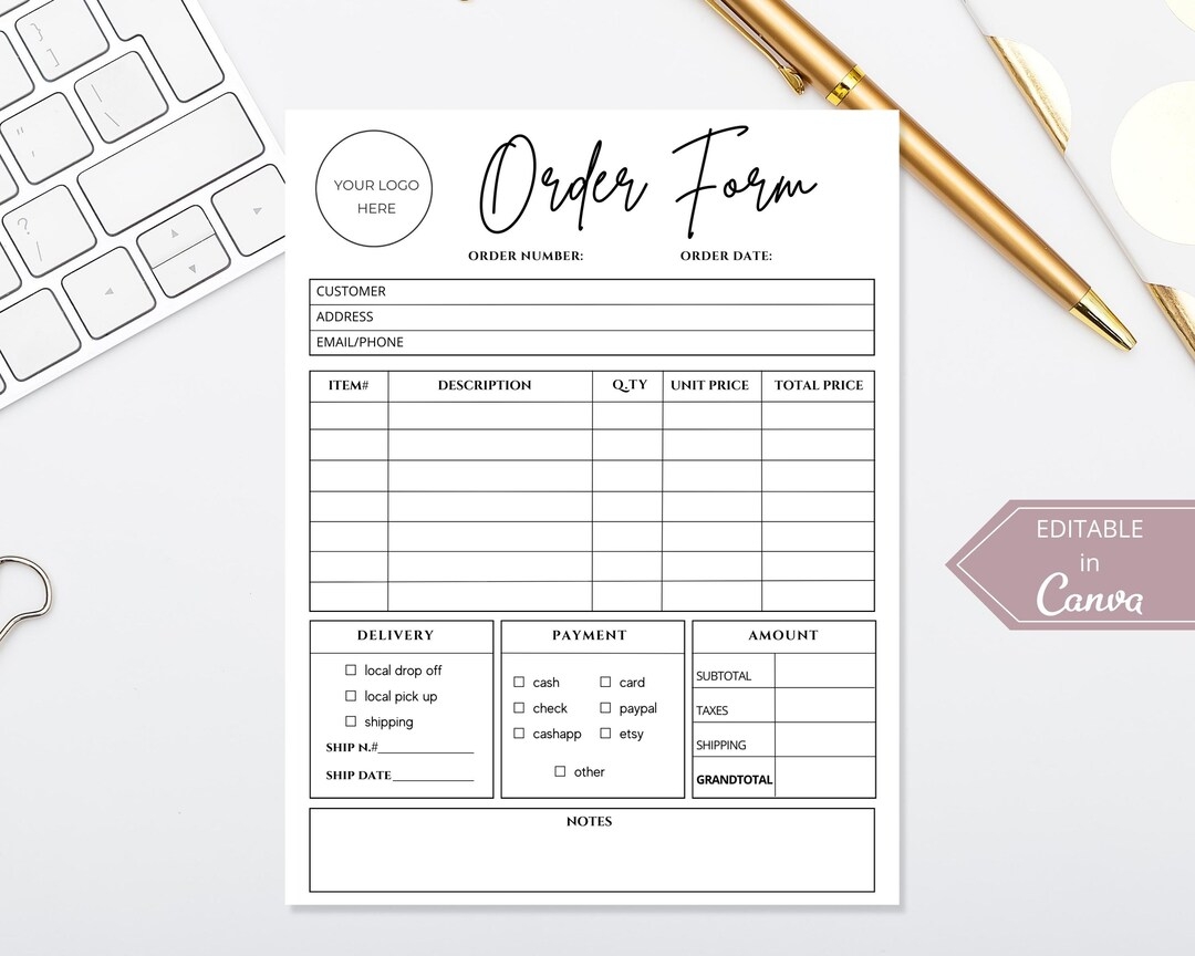 Editable Canva Order Form Template For Small Business