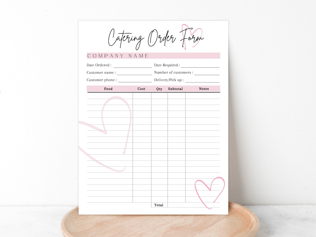 EDITABLE CATERING ORDER Form Printable Catering Order Form