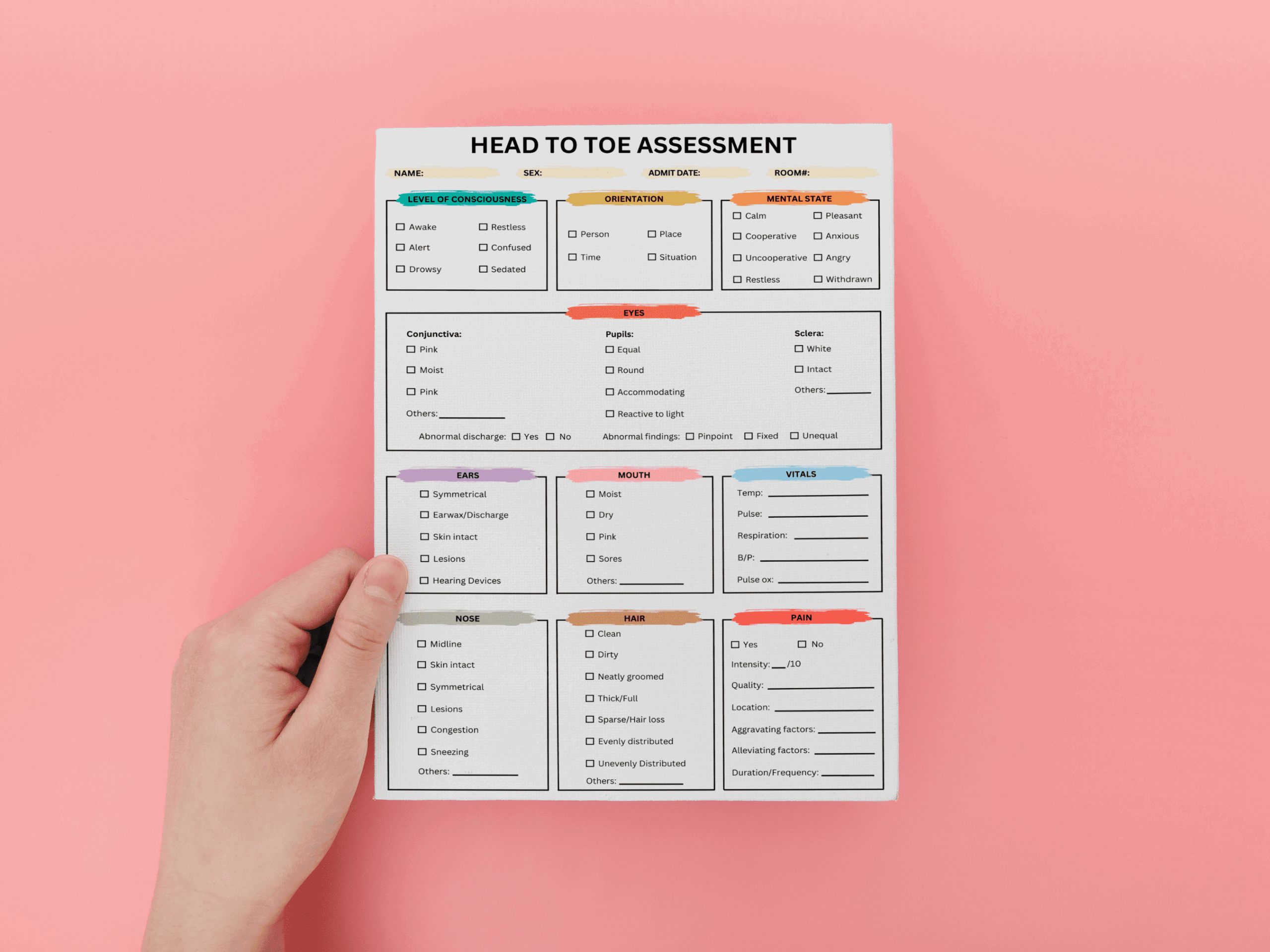 Don’t wait any longer to get your hands on this essential tool. Download our free printable head to toe assessment form PDF now and start documenting vital information with ease and efficiency. Your patients (or yourself) will thank you for it!