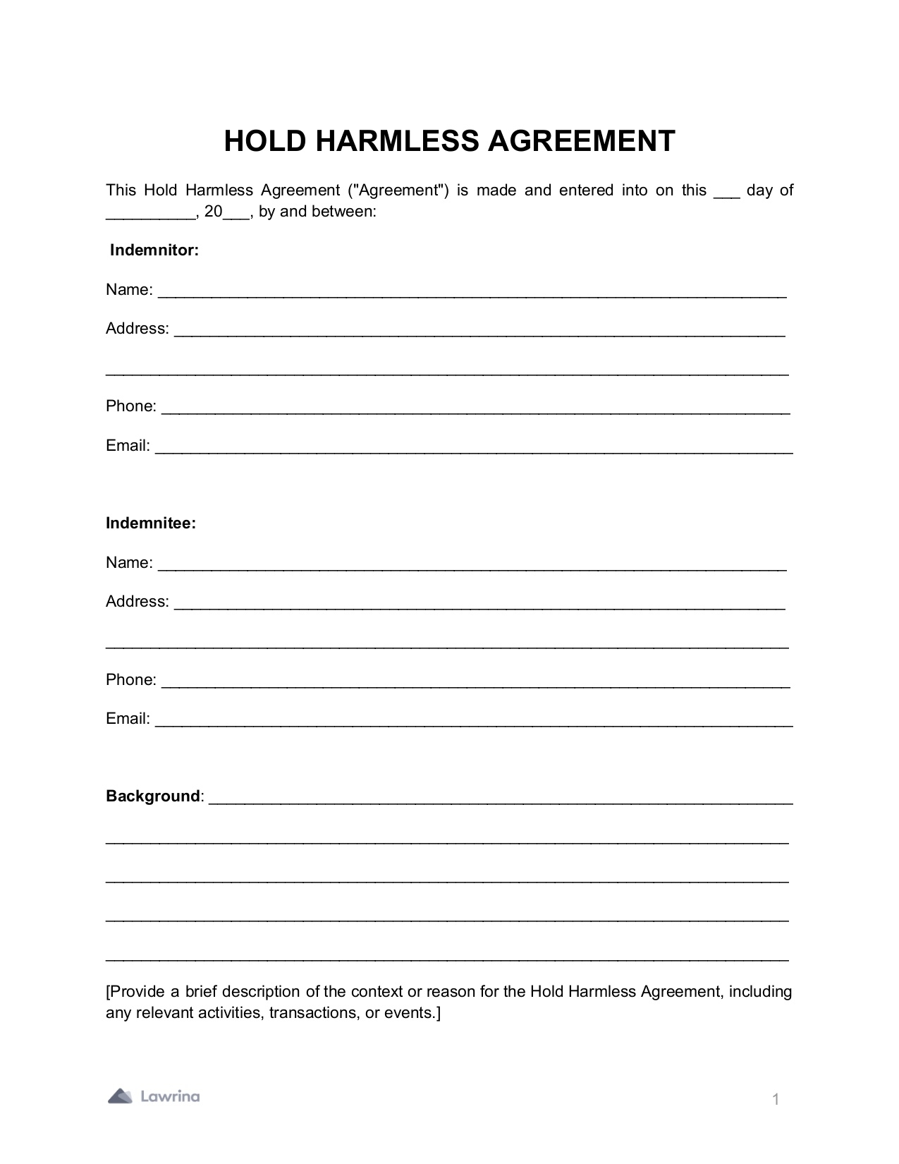 40 Hold Harmless Agreement Templates Free TemplateLab