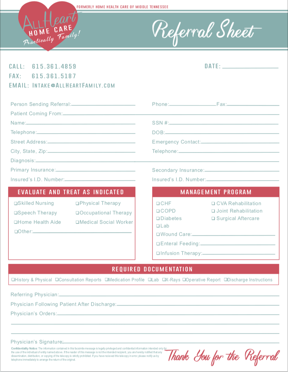 Physician Referral Form Printable U0026 Digital All Heart Home Care