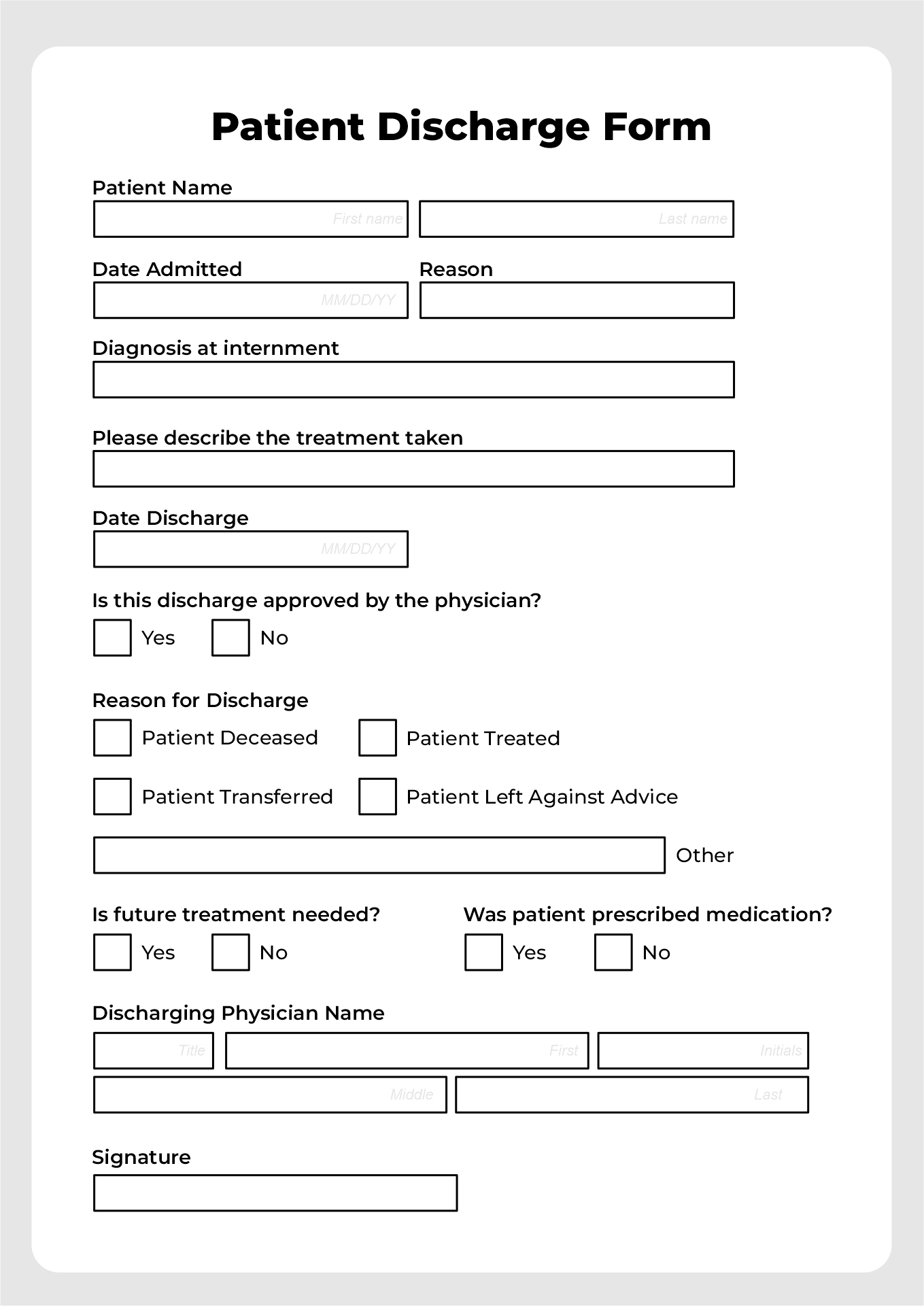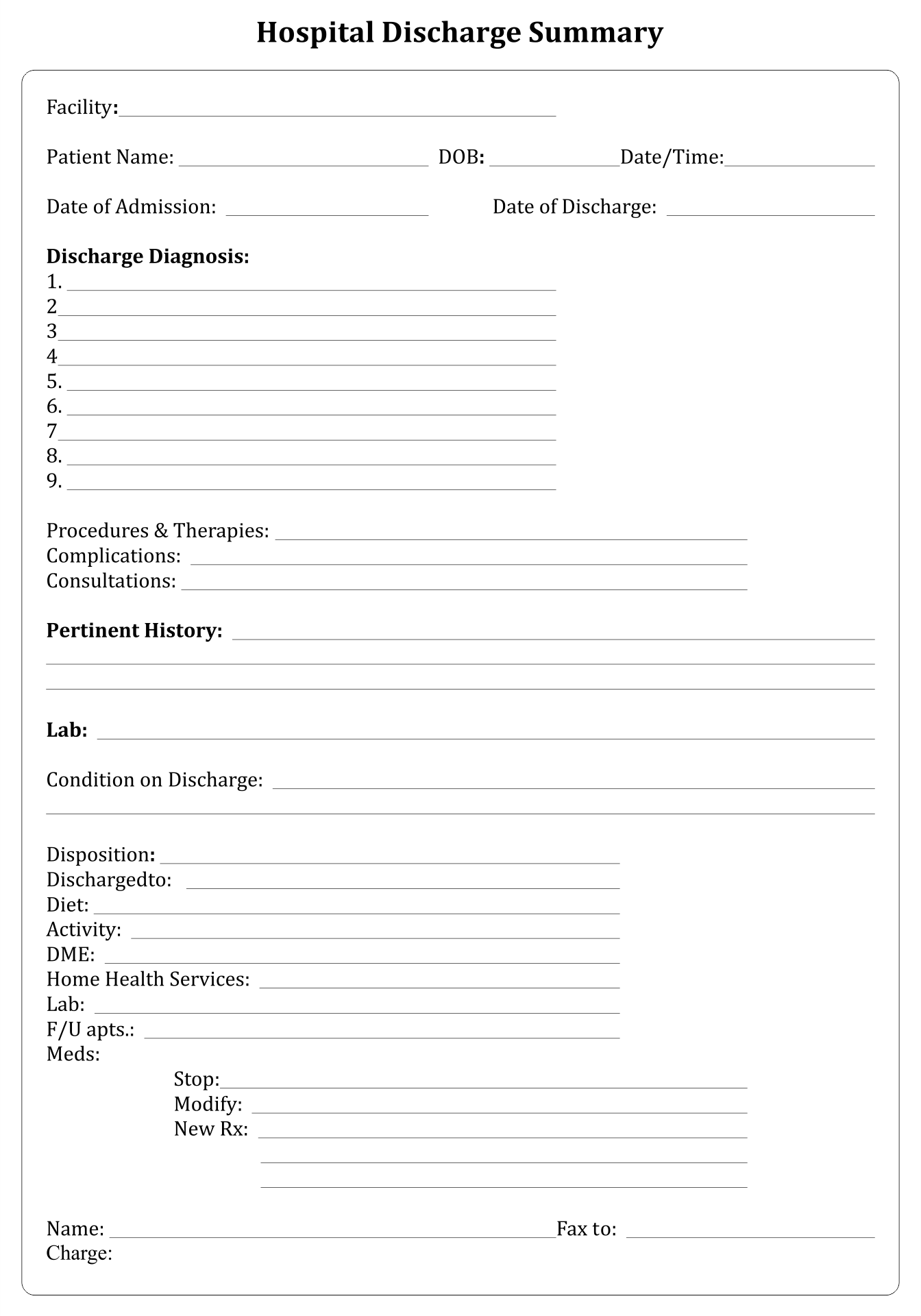 Hospital Discharge Forms 10 Free PDF Printables Printablee