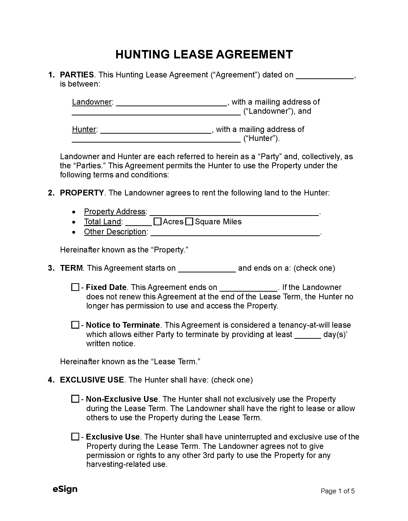 Free Hunting Lease Agreement PDF Word
