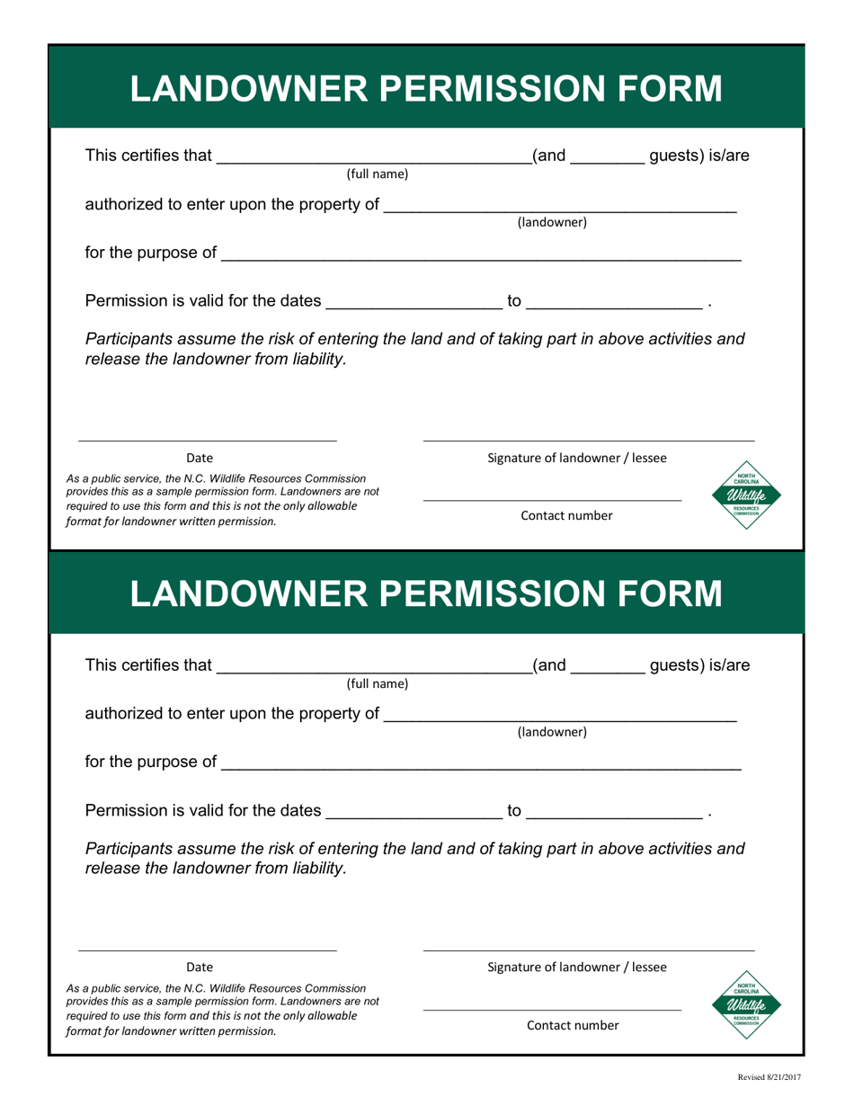 North Carolina Landowner Permission Form Fill Out Sign Online