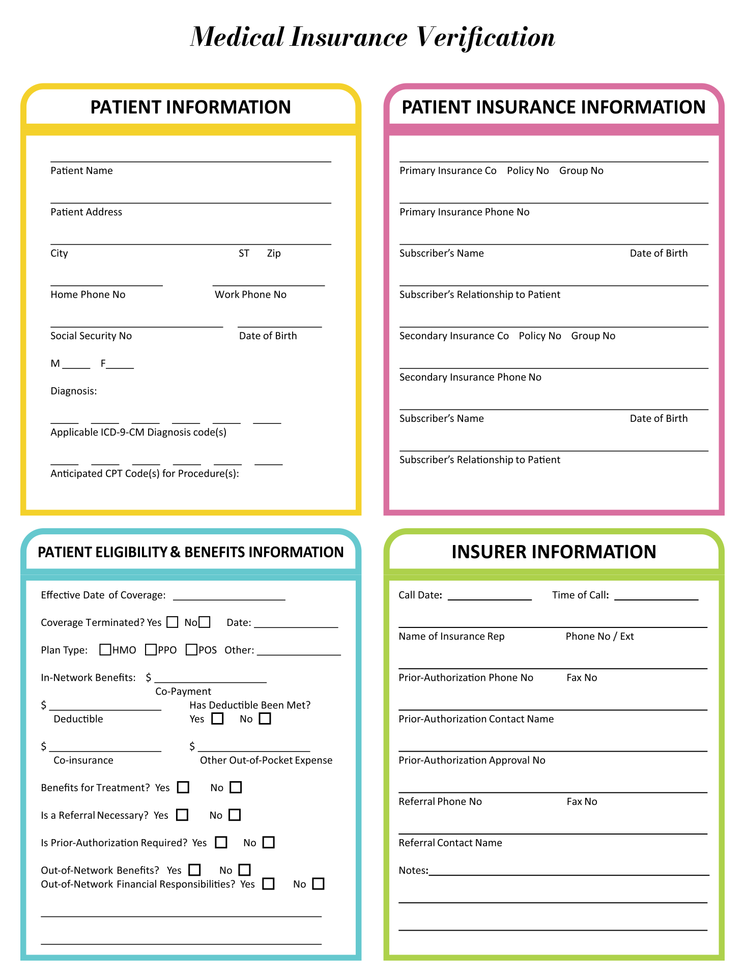 Don’t let insurance verification be a headache. Get organized, stay on top of important details, and make the process smoother with our free printable form. Download it now and see the difference it can make!