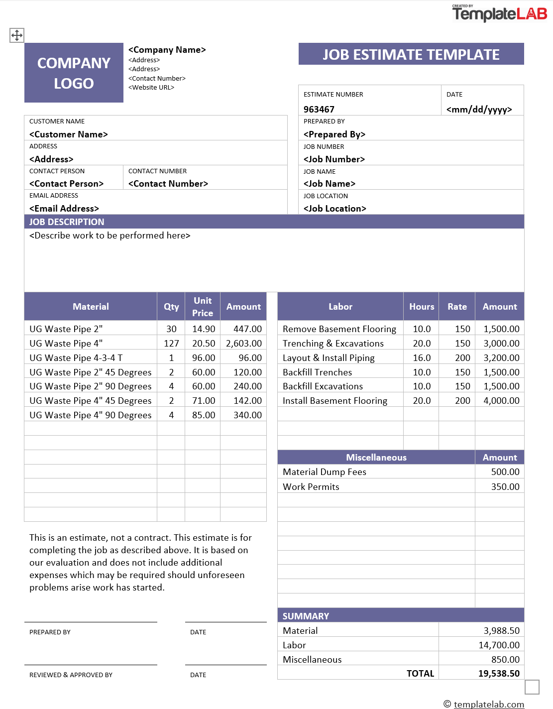 Free Printable Job Estimate Form