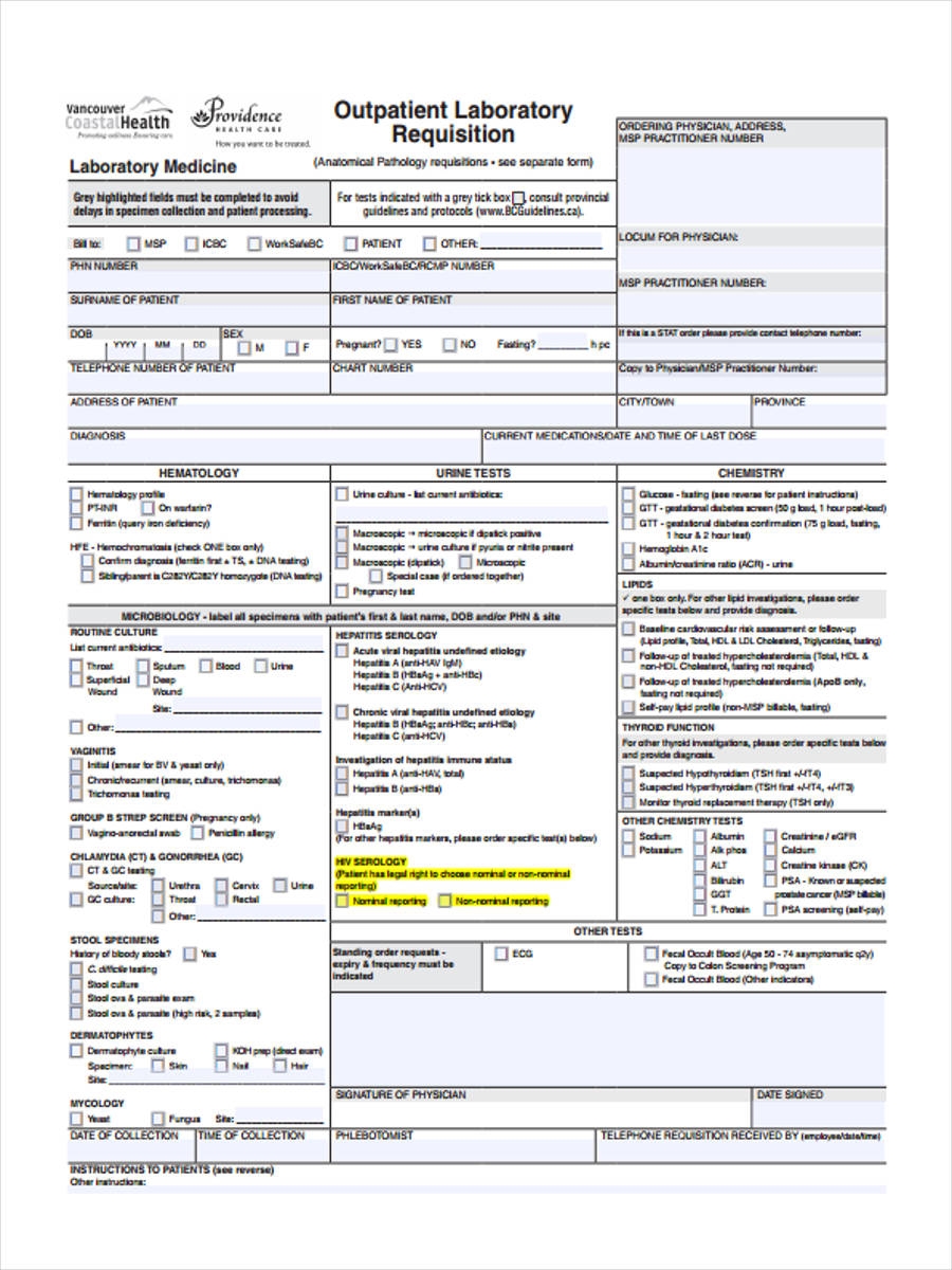 FREE 6 Lab Requisition Forms In PDF MS Word Pages