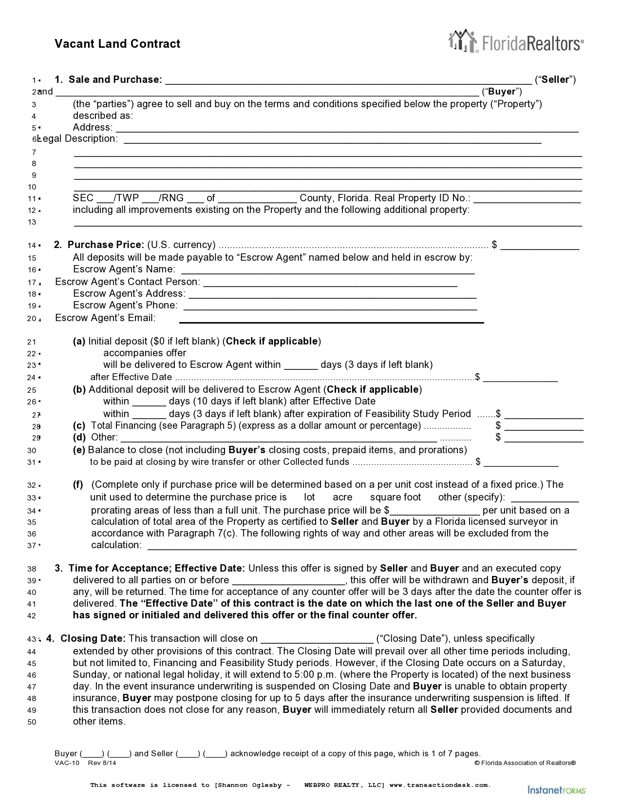 Free Printable Land Contract Forms Indiana