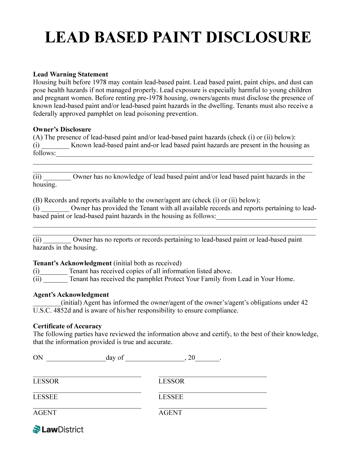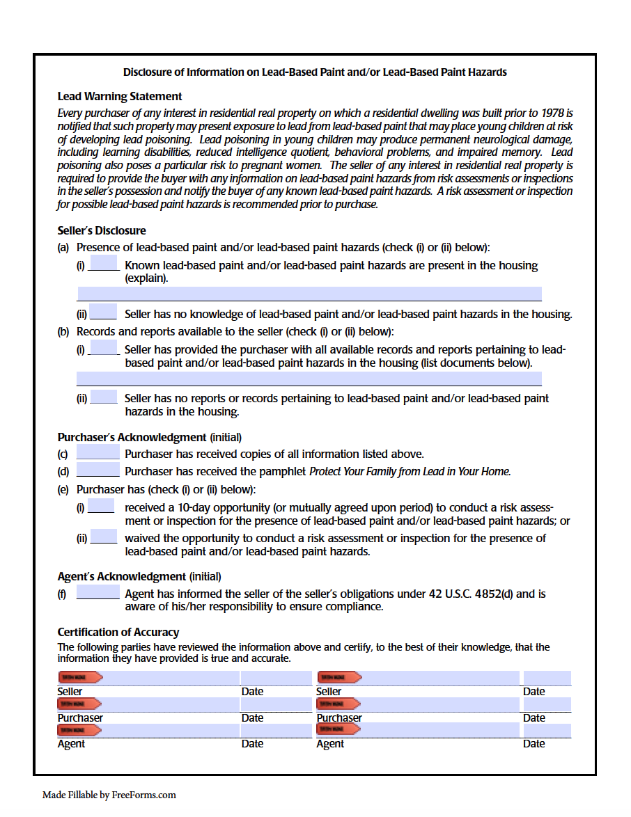 Free Lead Based Paint Disclosure Forms For Sellers U0026 Landlords PDF EForms