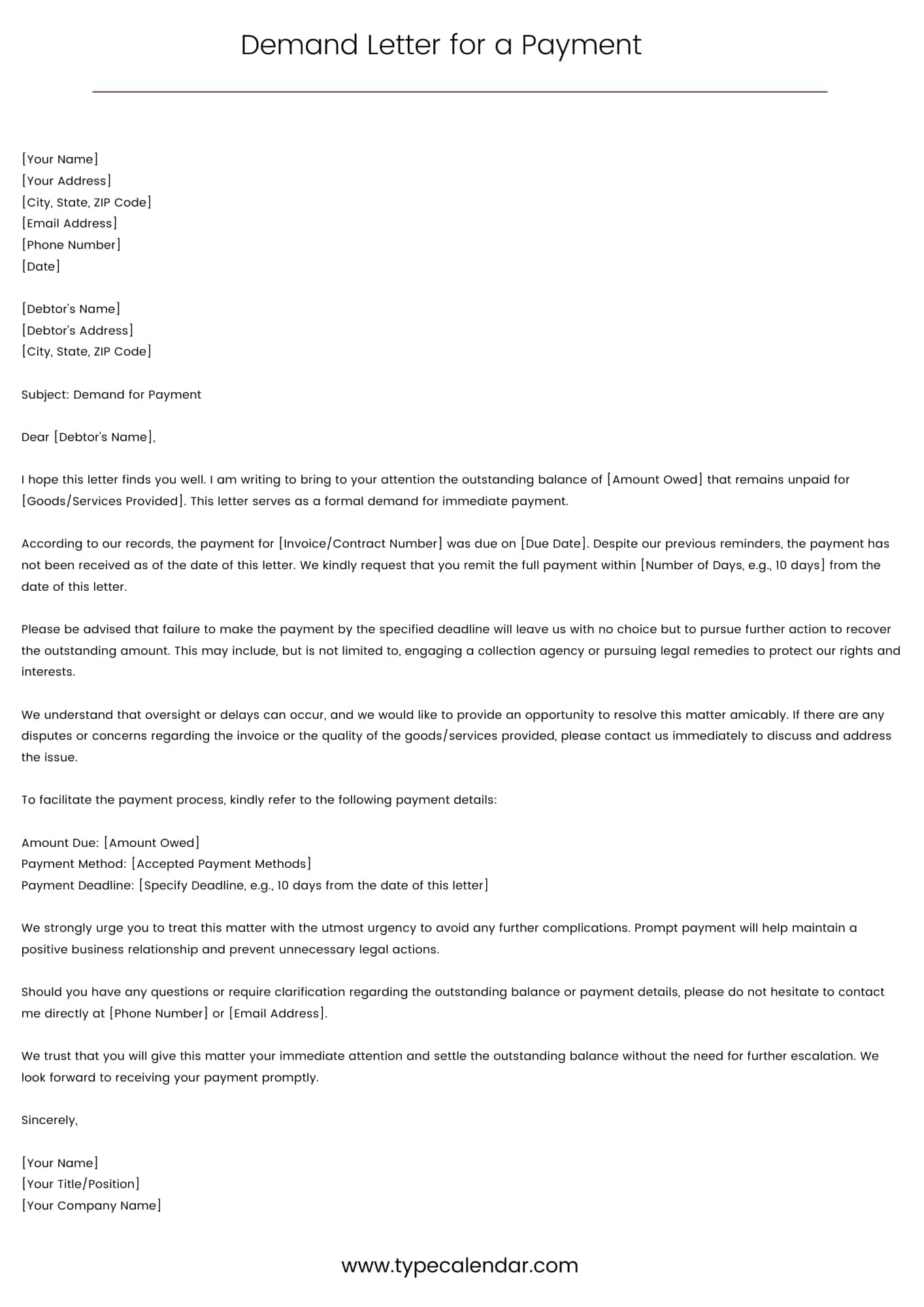 Whether you are a small business owner or an individual seeking to collect a debt, having a legal demand for payment form can make the process easier and more effective. By clearly outlining the amount owed, payment due date, and consequences of non-payment, you can increase your chances of getting paid.