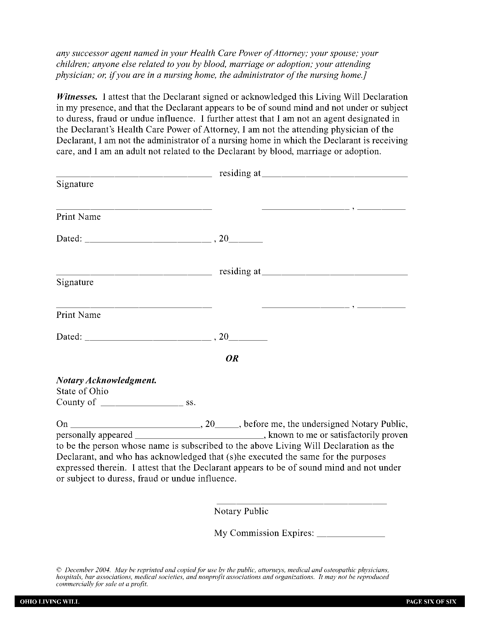 Free Ohio Living Will Form Declaration Template PDF EForms