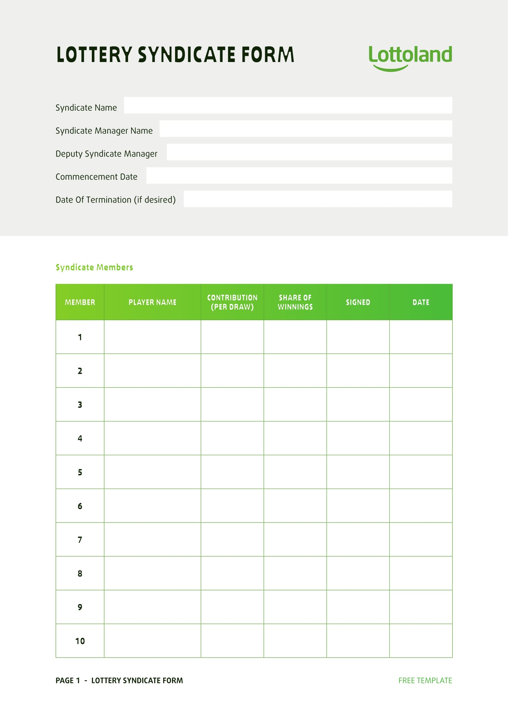 Are you part of a lottery syndicate with your friends or family? Keeping track of who’s in and how much they’ve contributed can be a hassle. That’s where a free printable lottery syndicate form can come in handy!