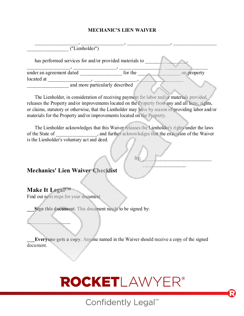 Free Mechanic s Lien Waiver Make U0026 Download Rocket Lawyer
