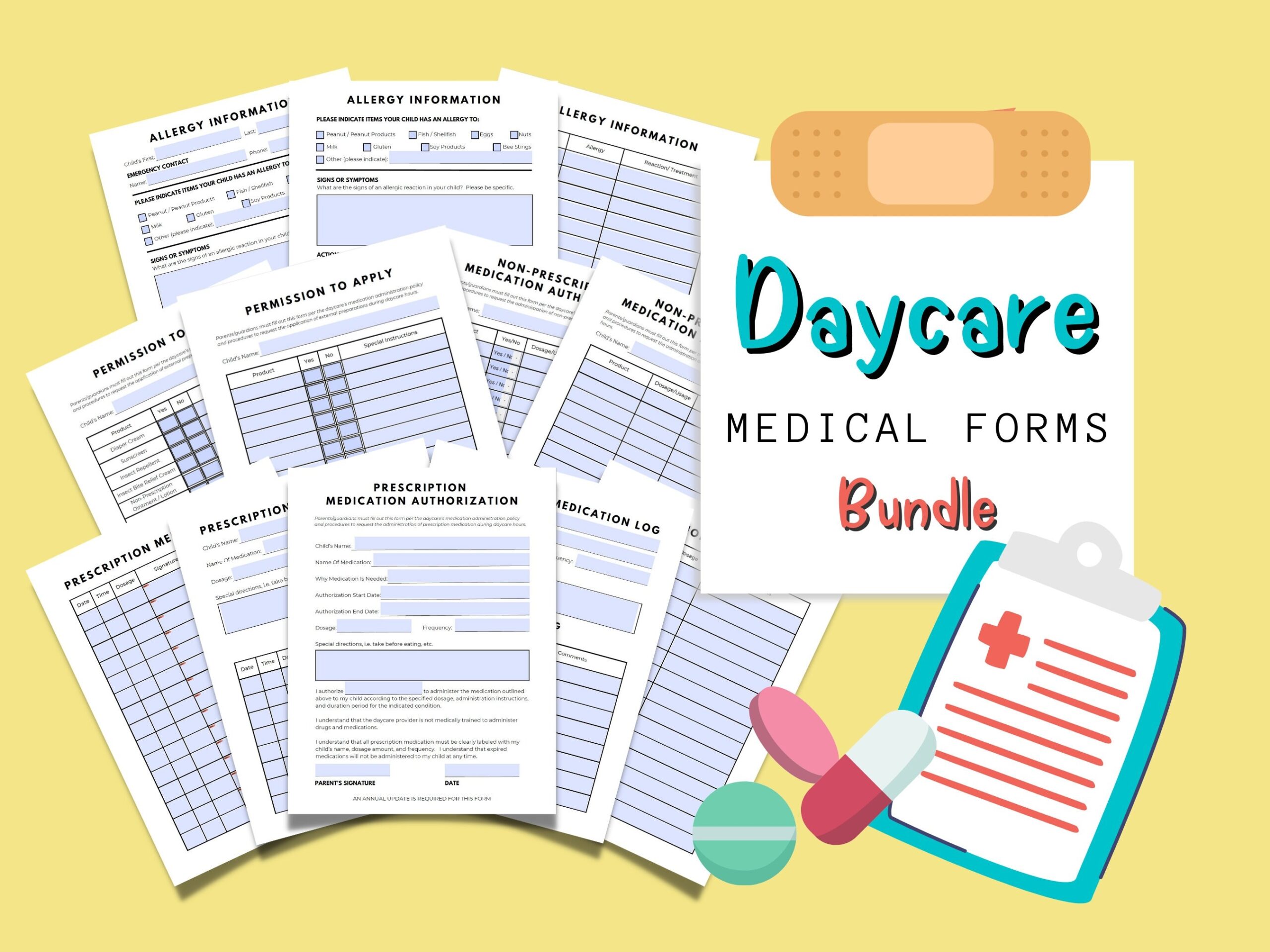 Daycare Medication Forms Medication Authorization Forms Allergy Information Form Permission To Apply Forms Medication Logs 8 5×11
