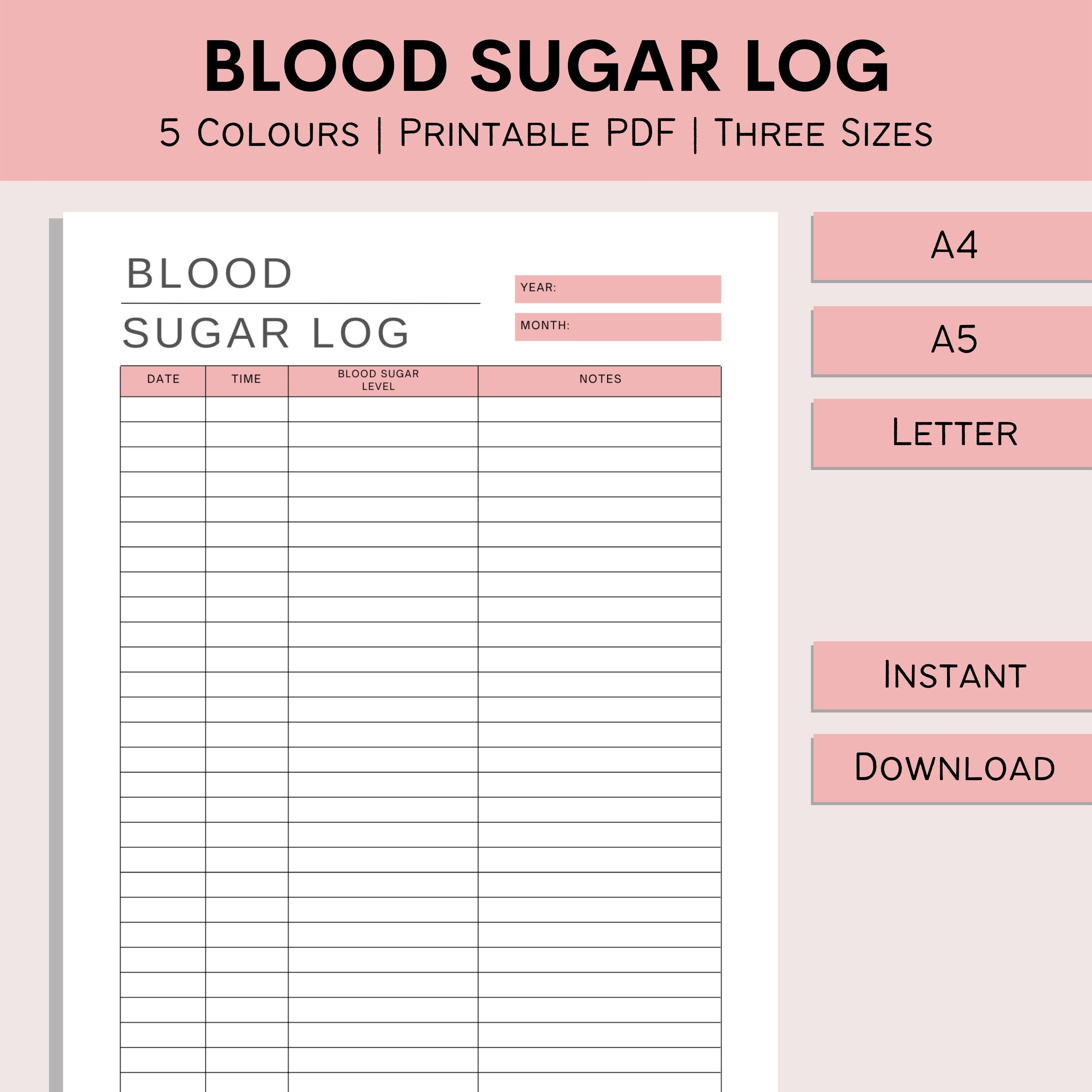 Blood Sugar Log Printable Blood Sugar Tracker Diabetic Log