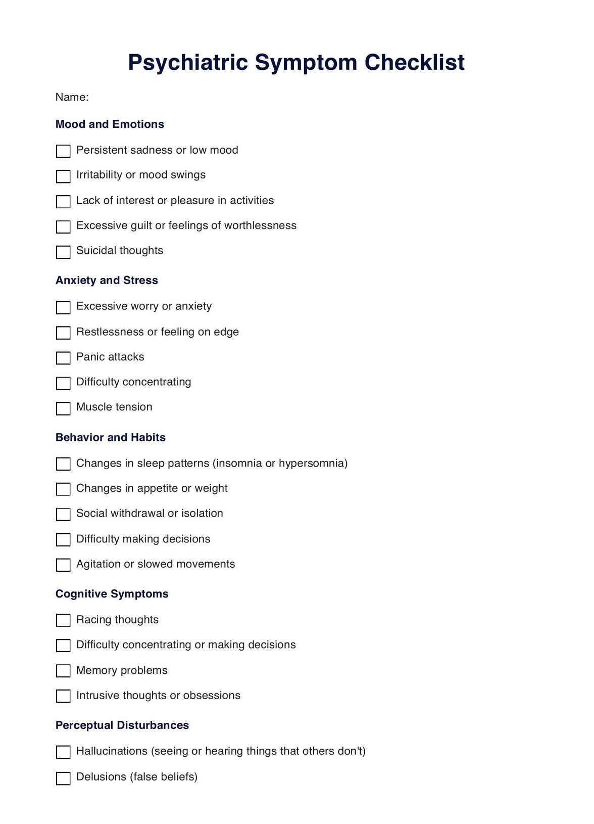 Psychiatric Symptom Checklist U0026 Example Free PDF Download