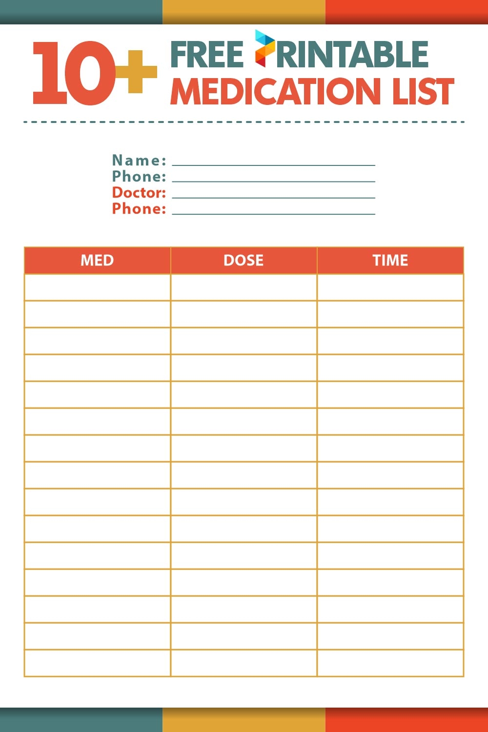 Medication List Templates 25 FREE Printables Printabulls Worksheets Library
