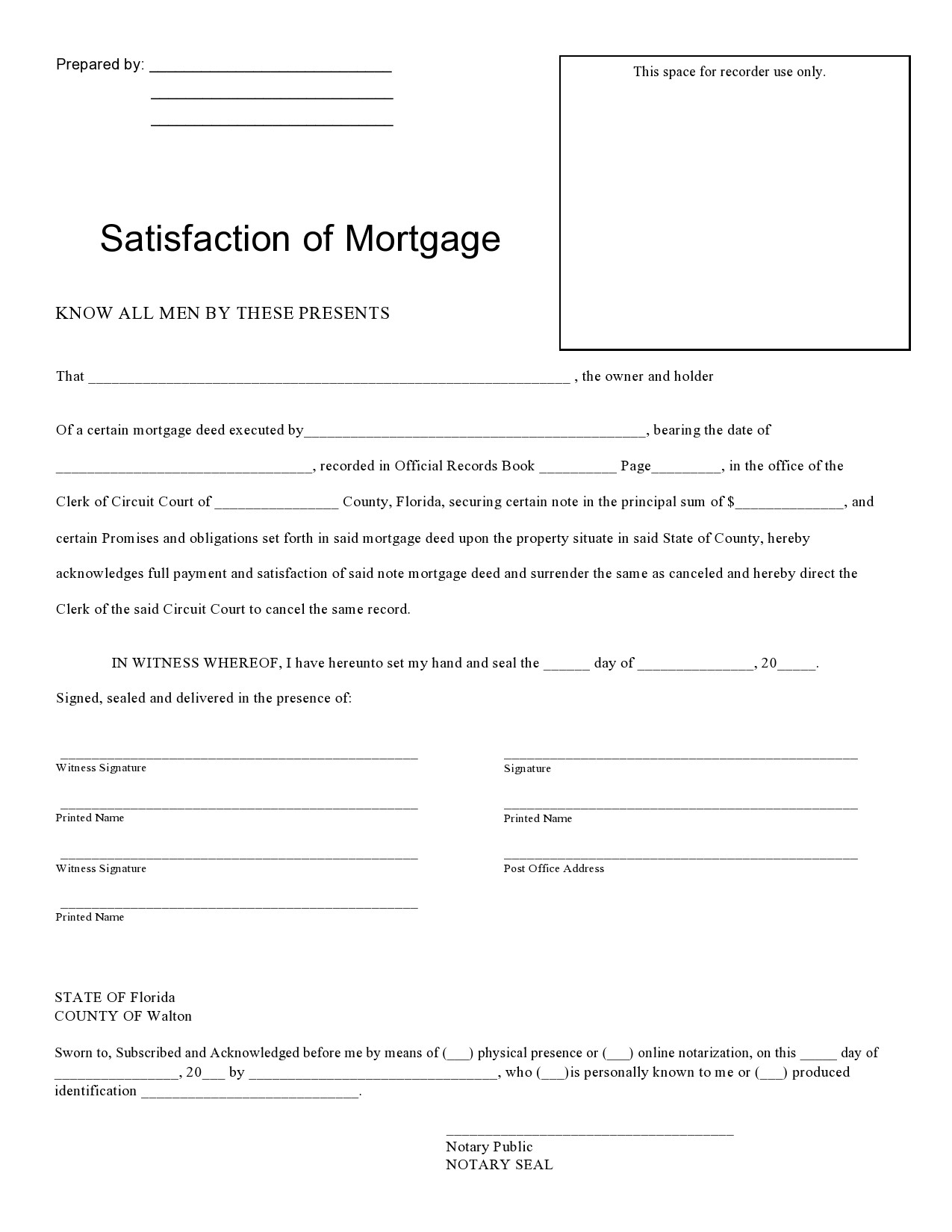 Free Printable Satisfaction Of Mortgage Templates Word PDF Example