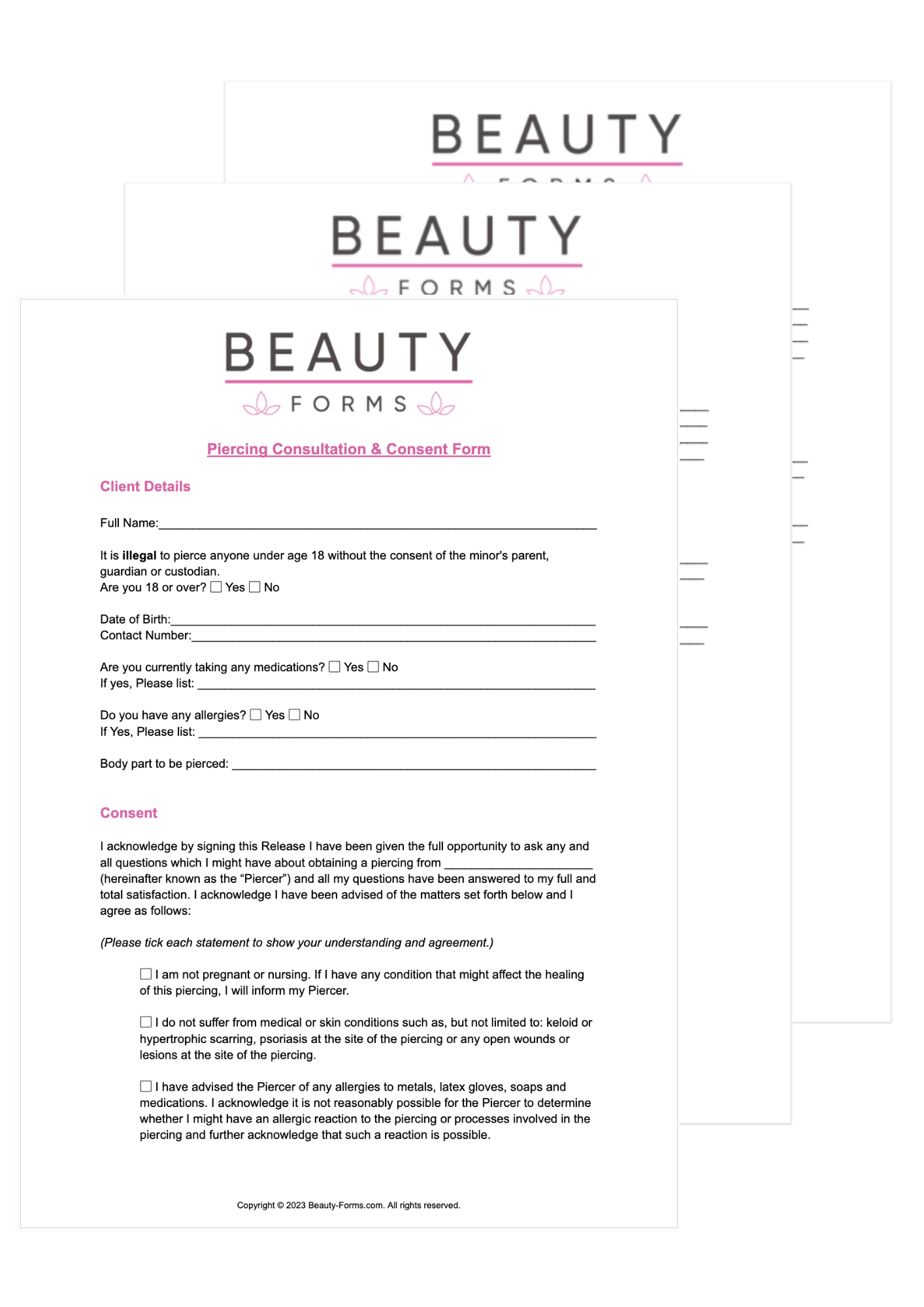 So, before you head to the piercing studio, make sure you have your free printable New York Piercing Consent Form ready to go. It’s a small but significant step that sets the stage for a successful and enjoyable piercing experience.