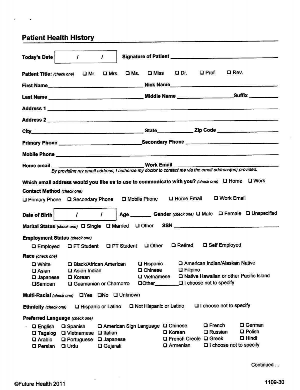 Free Printable Patient Demographic Form