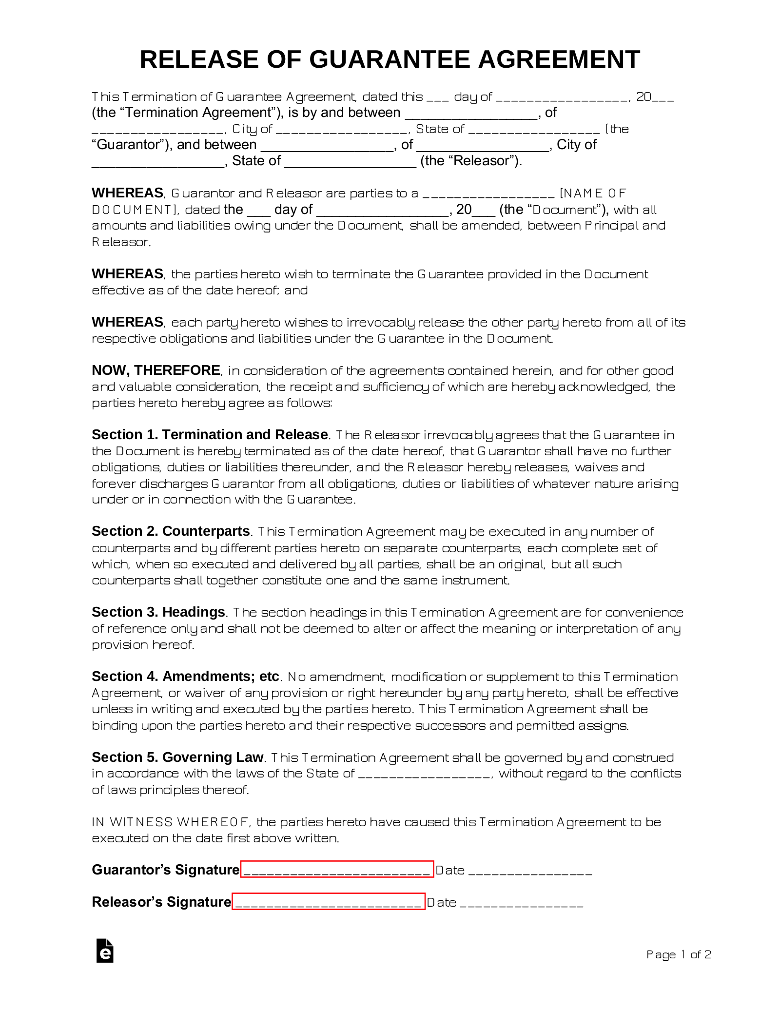 Free Release Of Personal Guarantee Form PDF Word EForms
