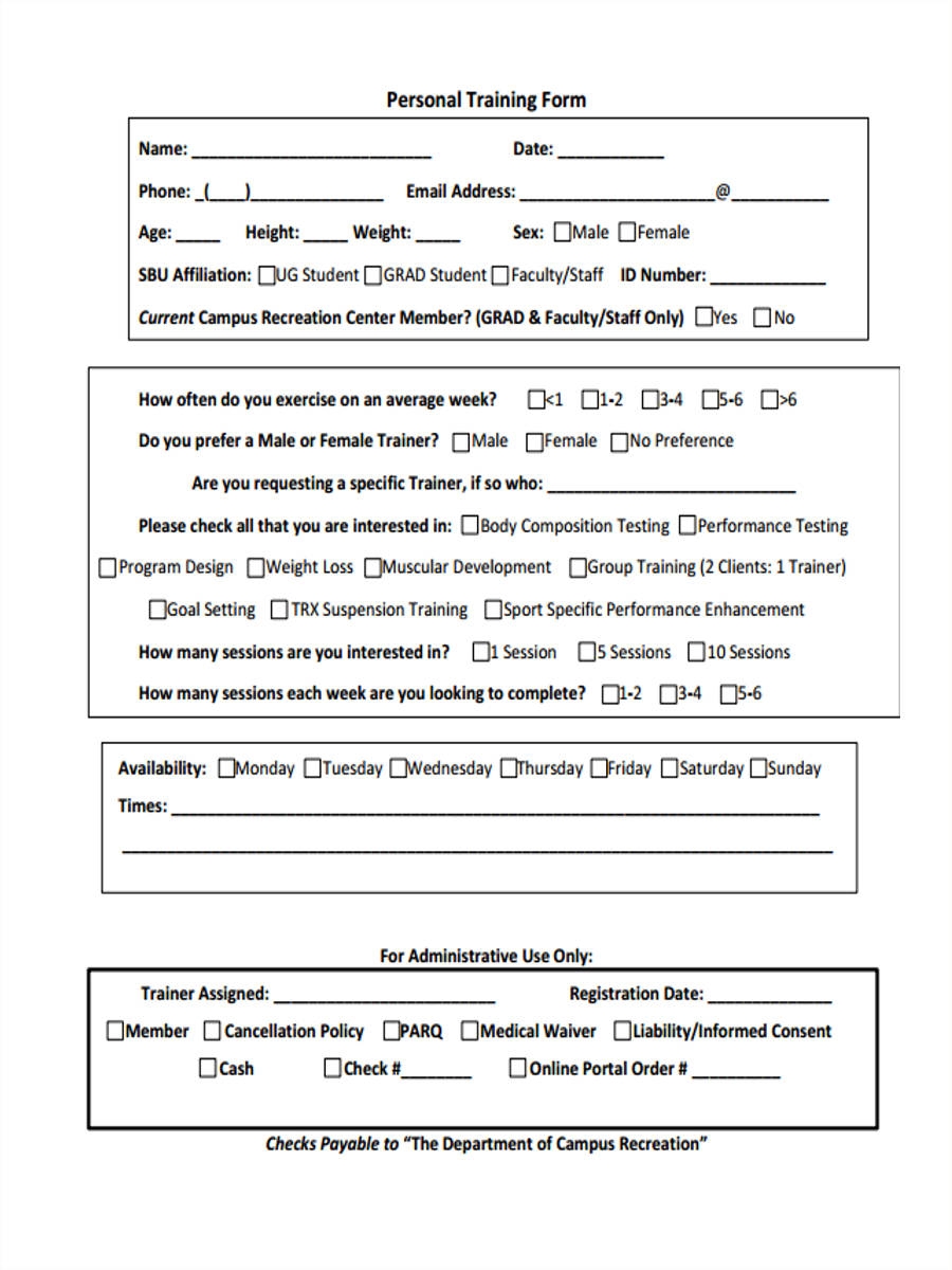 Free Printable Personal Training Forms