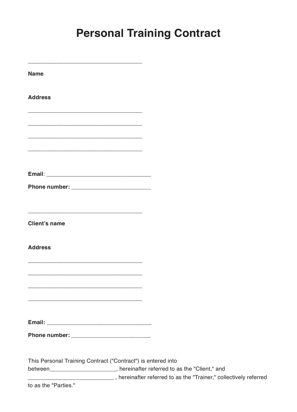 Personal Training Contract Template U0026 Sample Free PDF Download