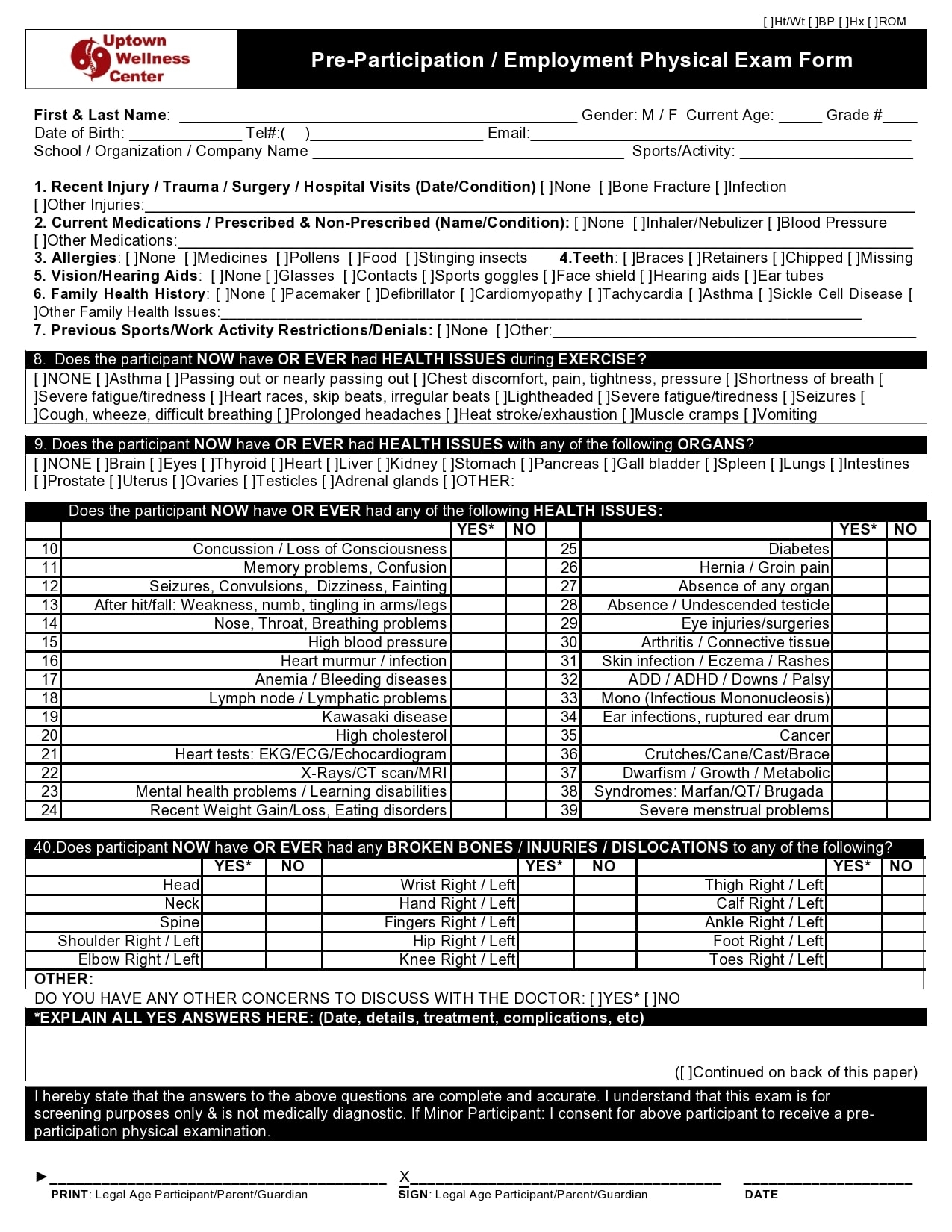 40 Printable Physical Forms For Work 100 Free TemplateArchive