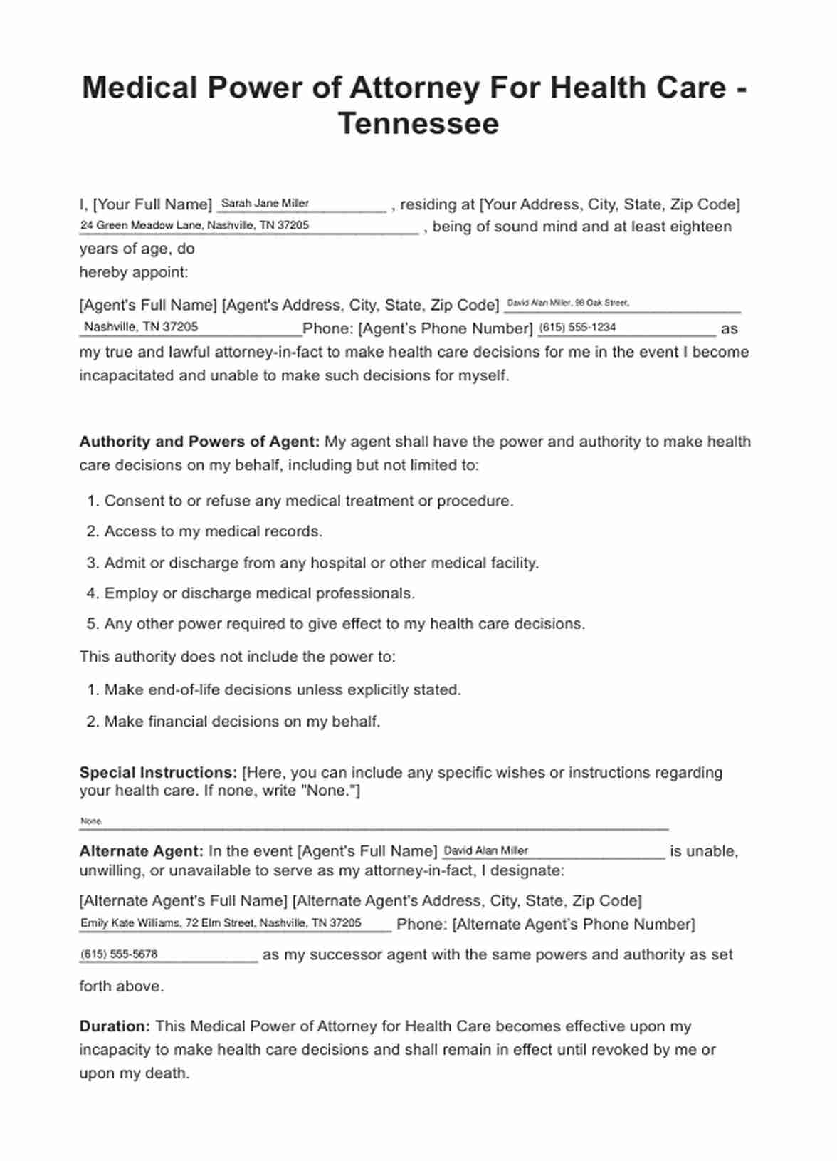 Medical Power Of Attorney Tennessee Form U0026 Example Free PDF Download
