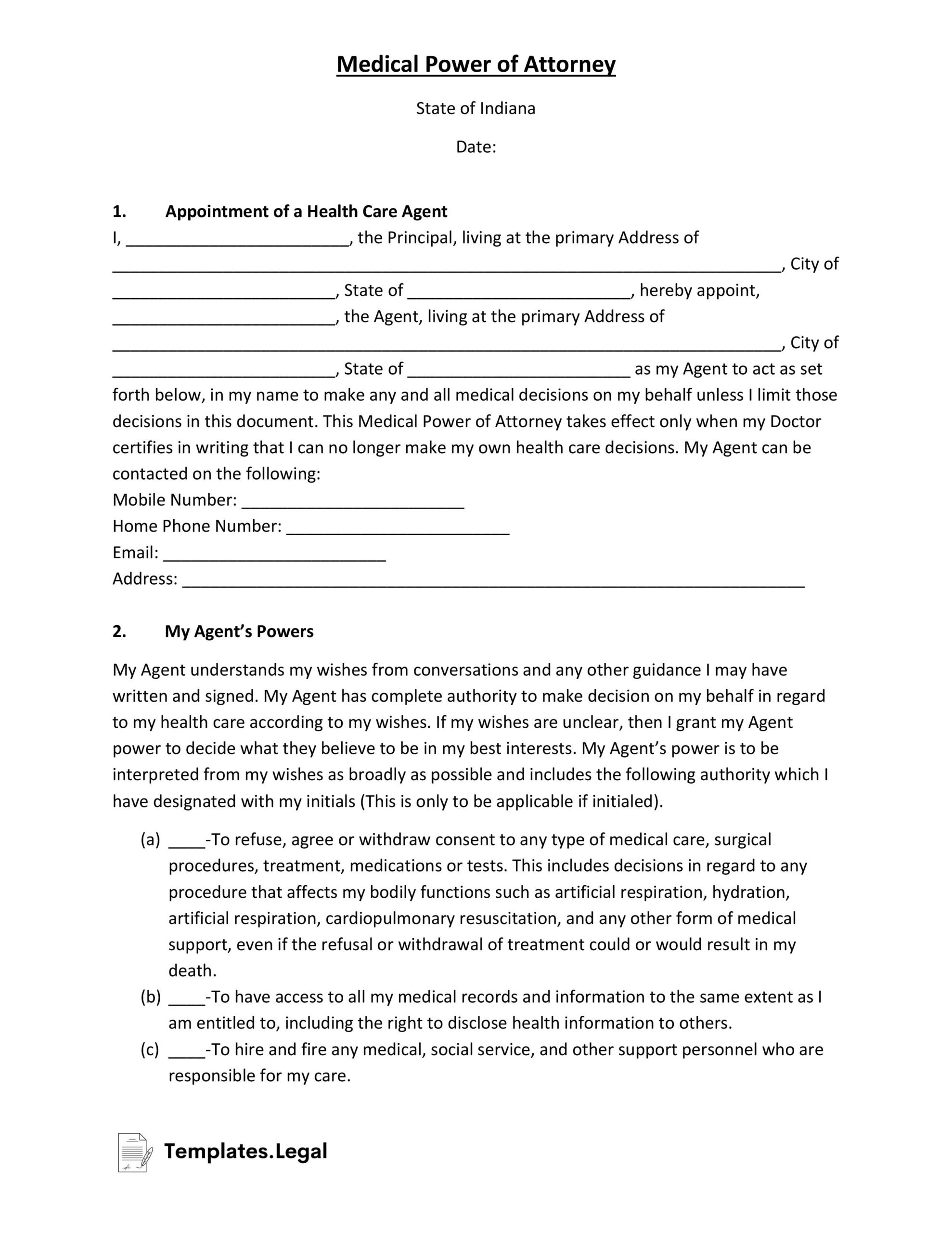 Indiana Power Of Attorney Templates Free Word PDF U0026 ODT