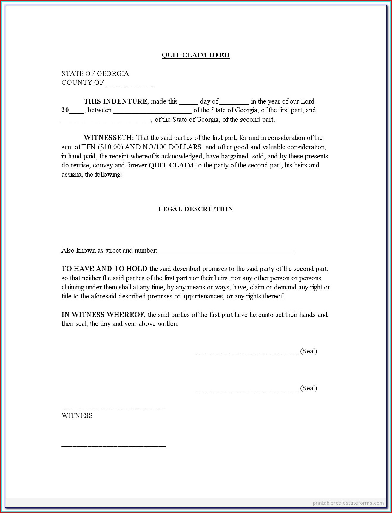 State Of Georgia Quit Claim Deed Form Worksheets Library