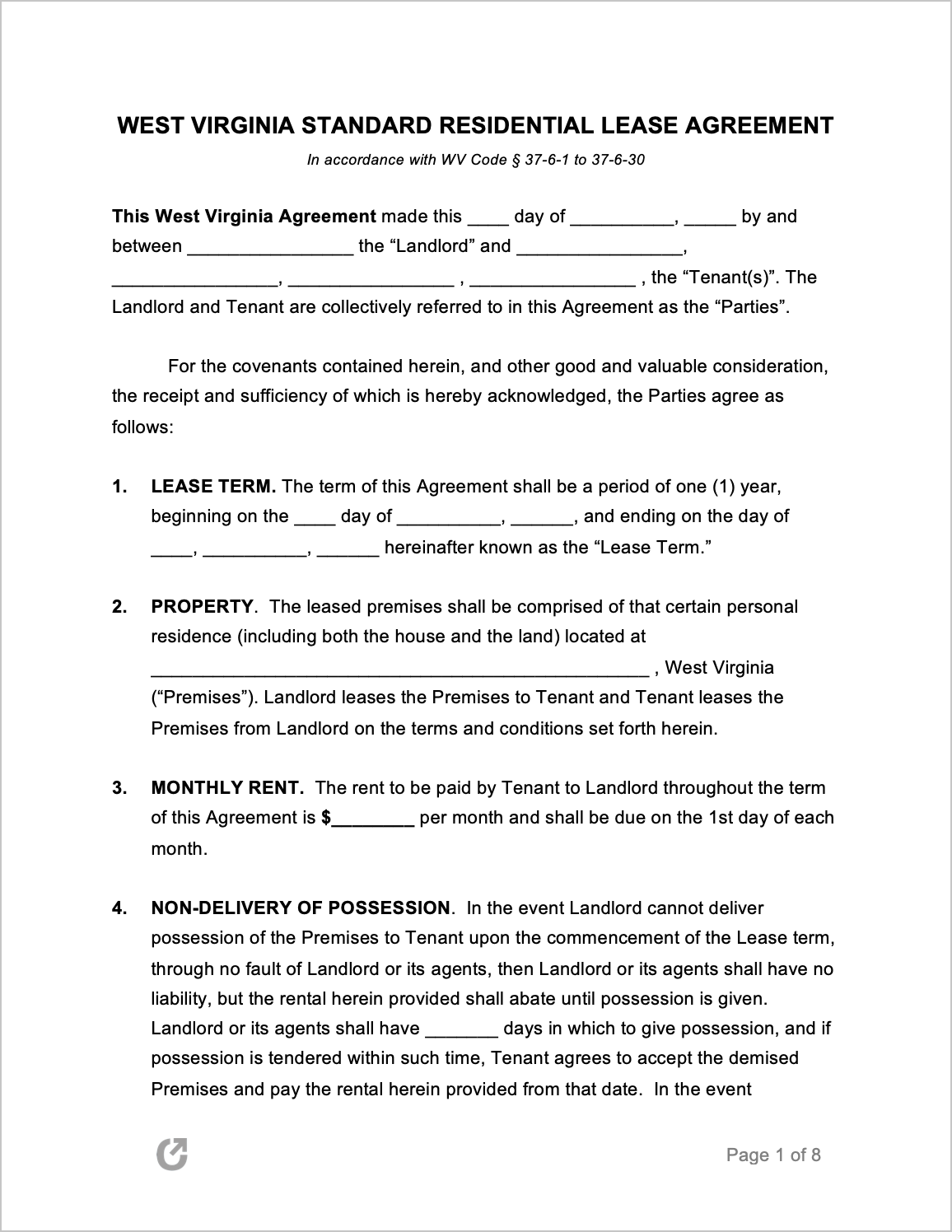 Free West Virginia Rental Lease Agreement Templates PDF WORD