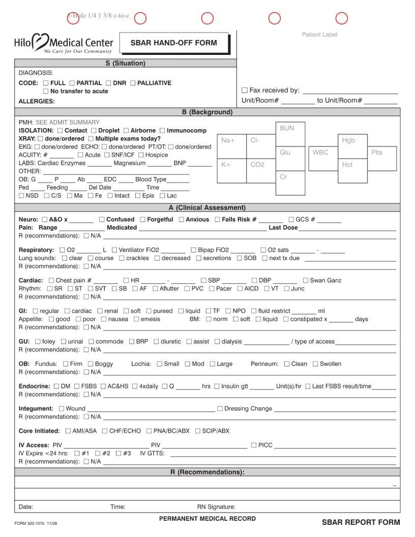 Nursing SBAR Report Sheet Google Docs Word Highfile