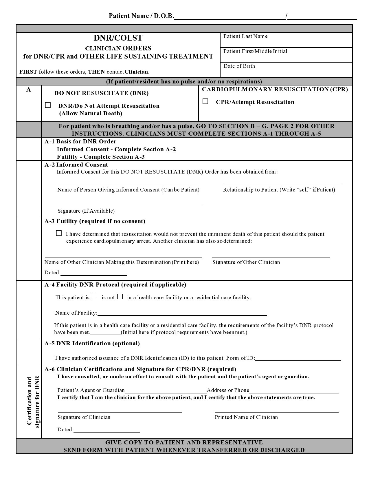 43 Printable Do Not Resuscitate Forms All States TemplateLab