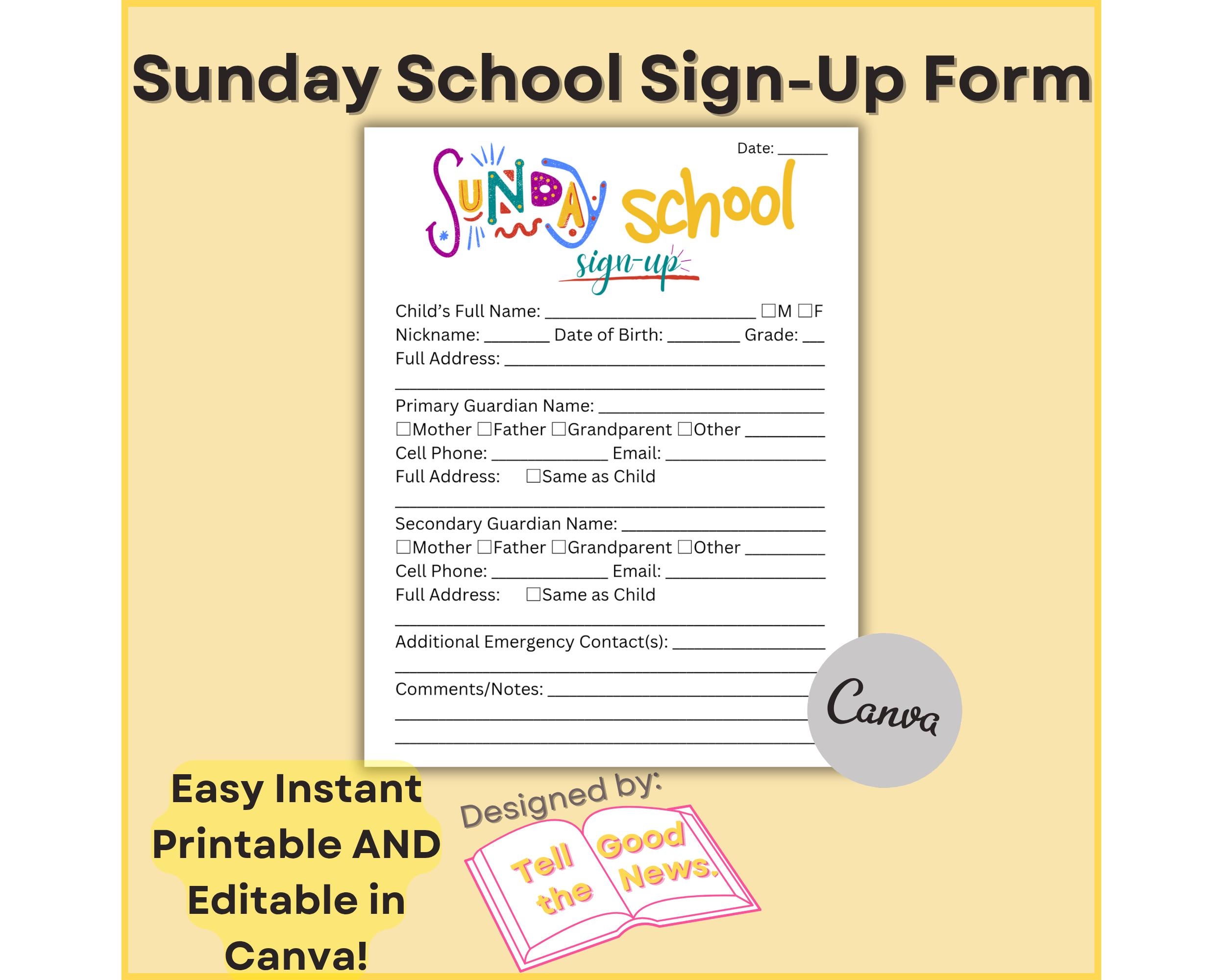 Sunday School Sign up Registration Form Kid s Ministry Children s Ministry Church Flyer Instant Download Editable In Canva Printable Etsy