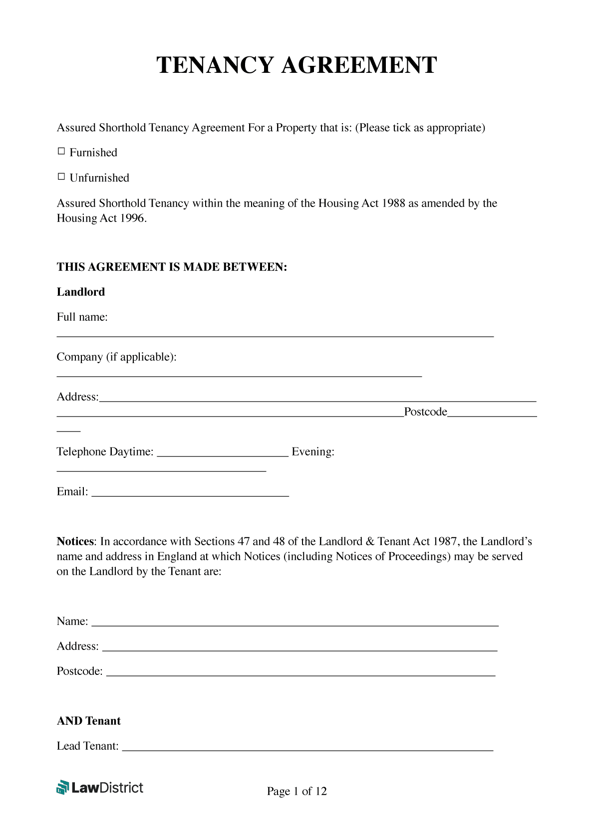 Free Tenancy Agreement Template UK Sample U0026 PDF LawDistrict