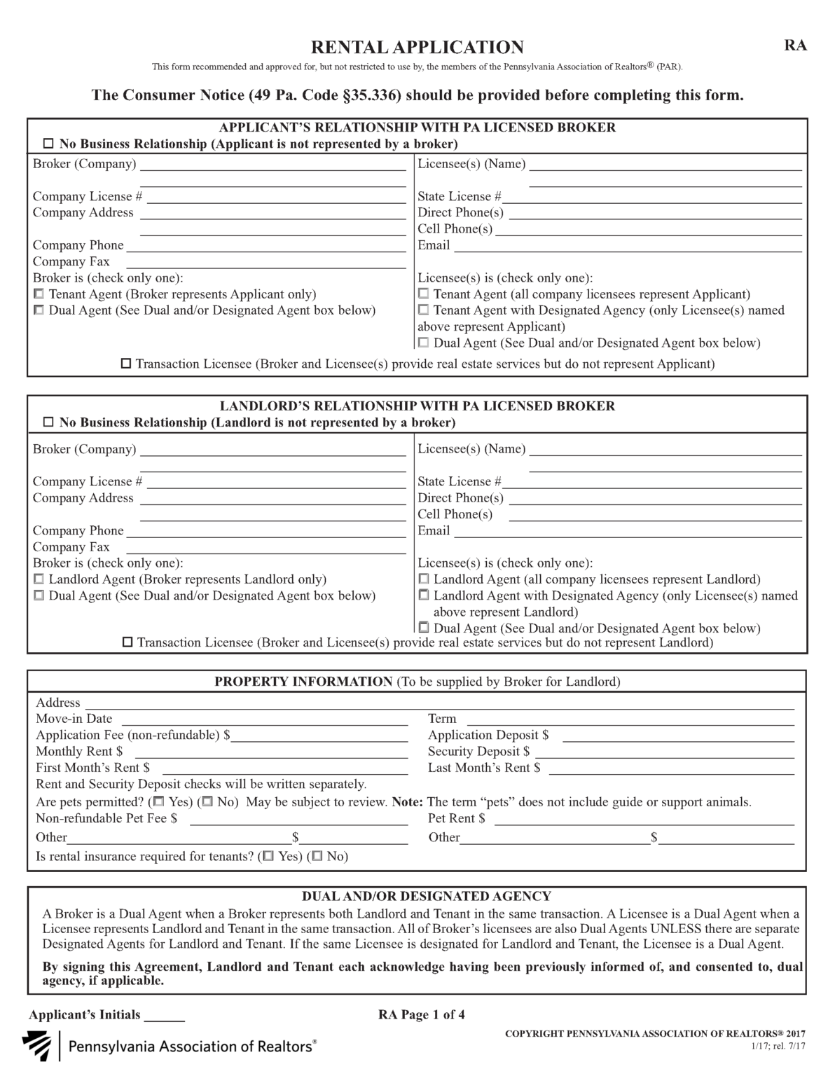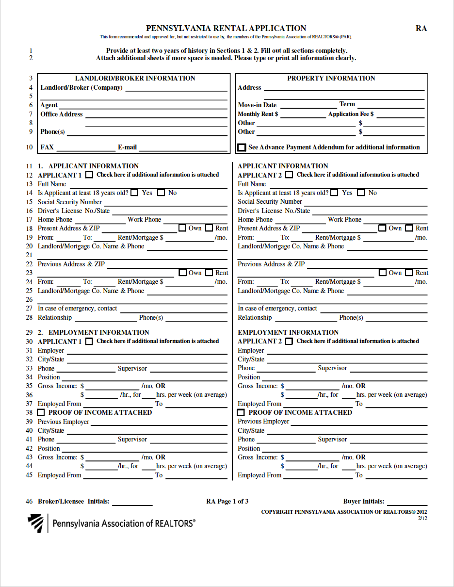 Free Pennsylvania Rental Application Template PDF Word EForms