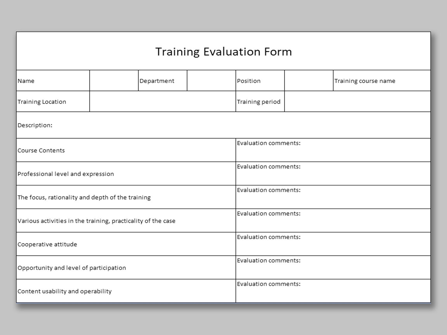 Free Printable Training Evaluation Forms