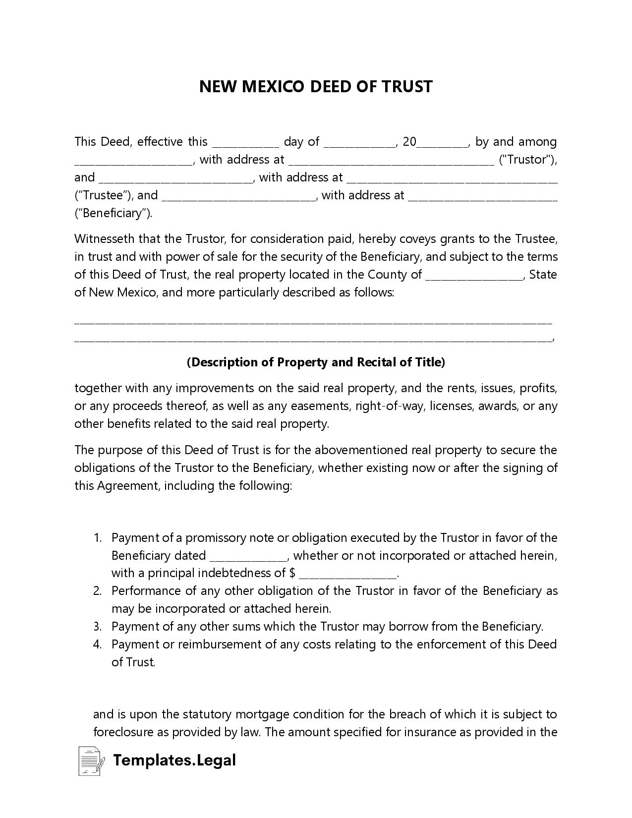 New Mexico Deed Forms U0026 Templates Free Word PDF ODT