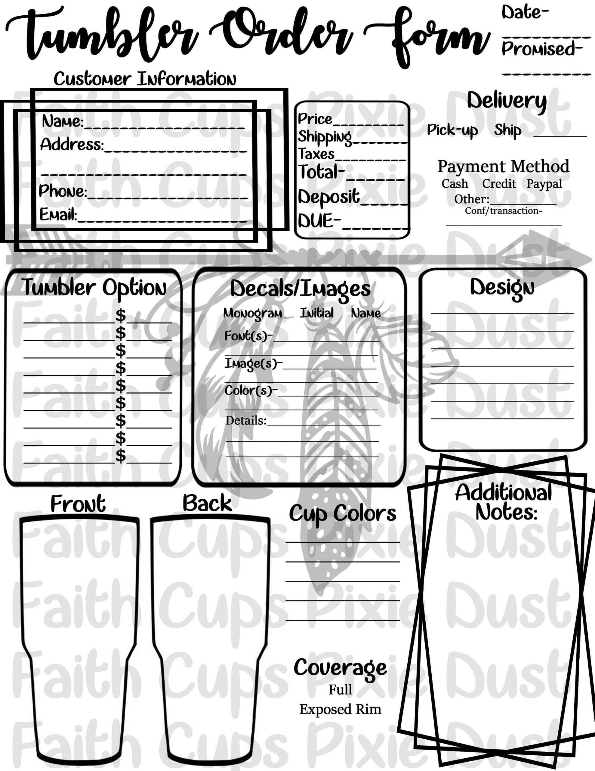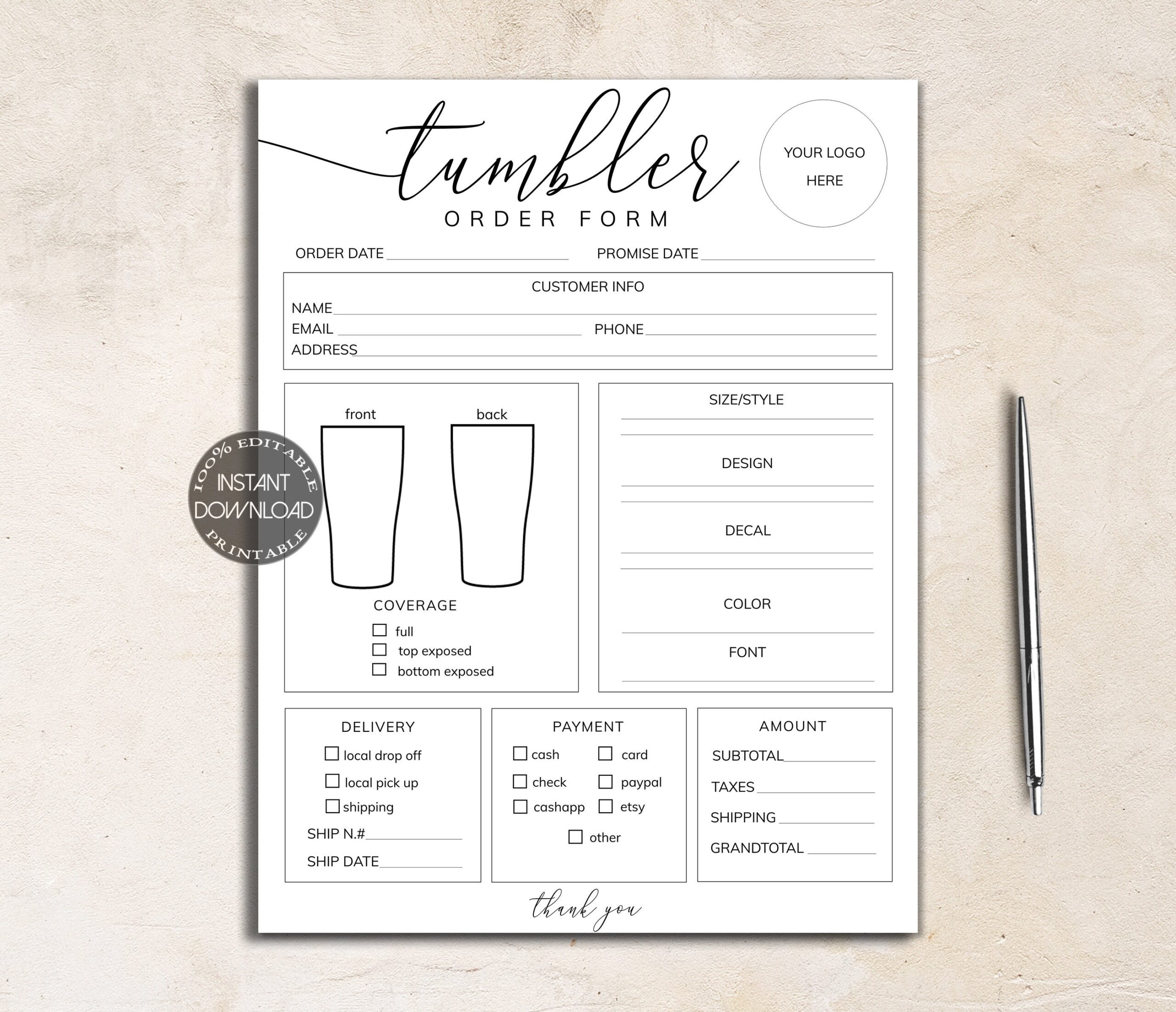 TUMBLER ORDER FORM Editable Tumbler Order Form Template Tumbler Order Sheet Tumbler Sale Tracker Cup Order Form Custom Tumbler Form Etsy