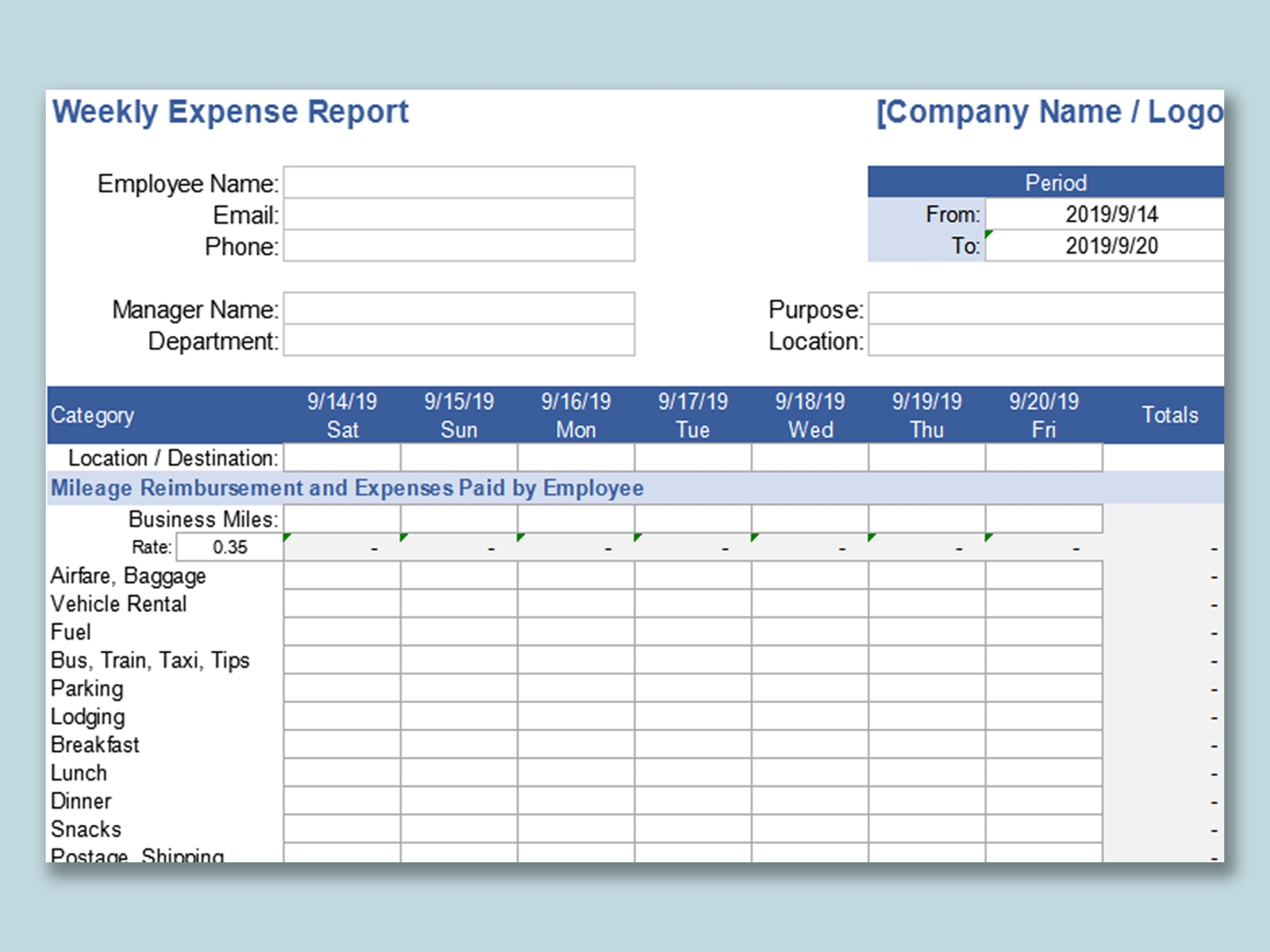 EXCEL Of Weekly Expense Report xlsx WPS Free Templates