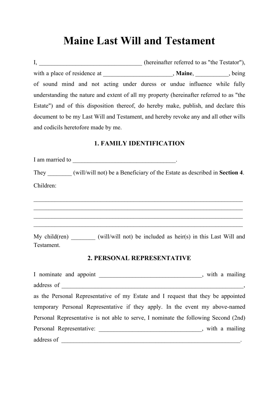 Maine Last Will And Testament Template Fill Out Sign Online And Download PDF Templateroller