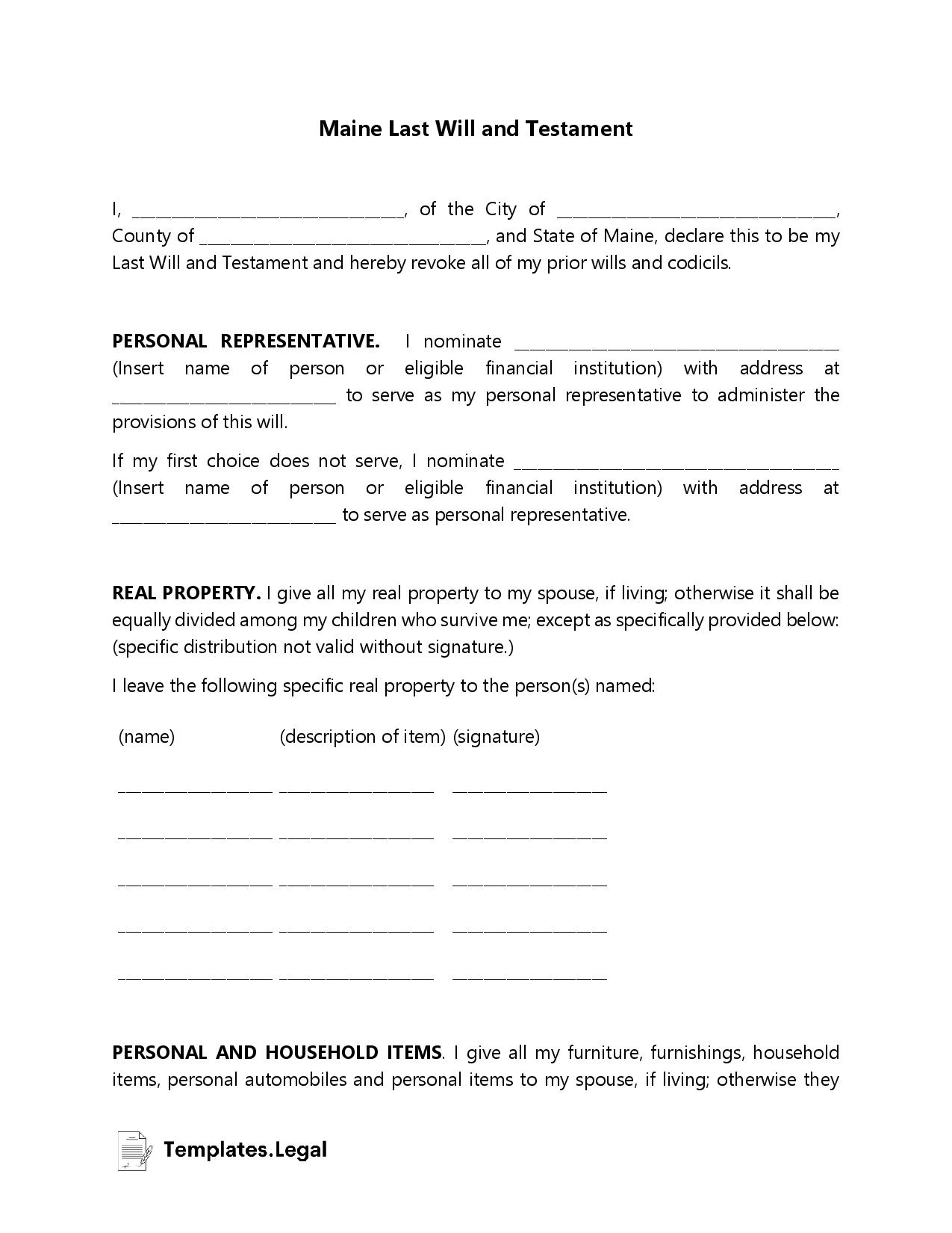 Maine Last Will And Testament Templates Free Word PDF ODT