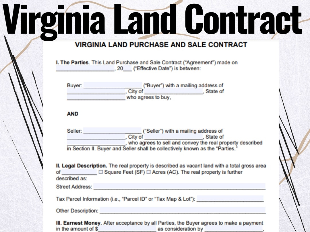 Virginia Land Contract Virginia Land Contract Template Virginia Land Contract Form Etsy