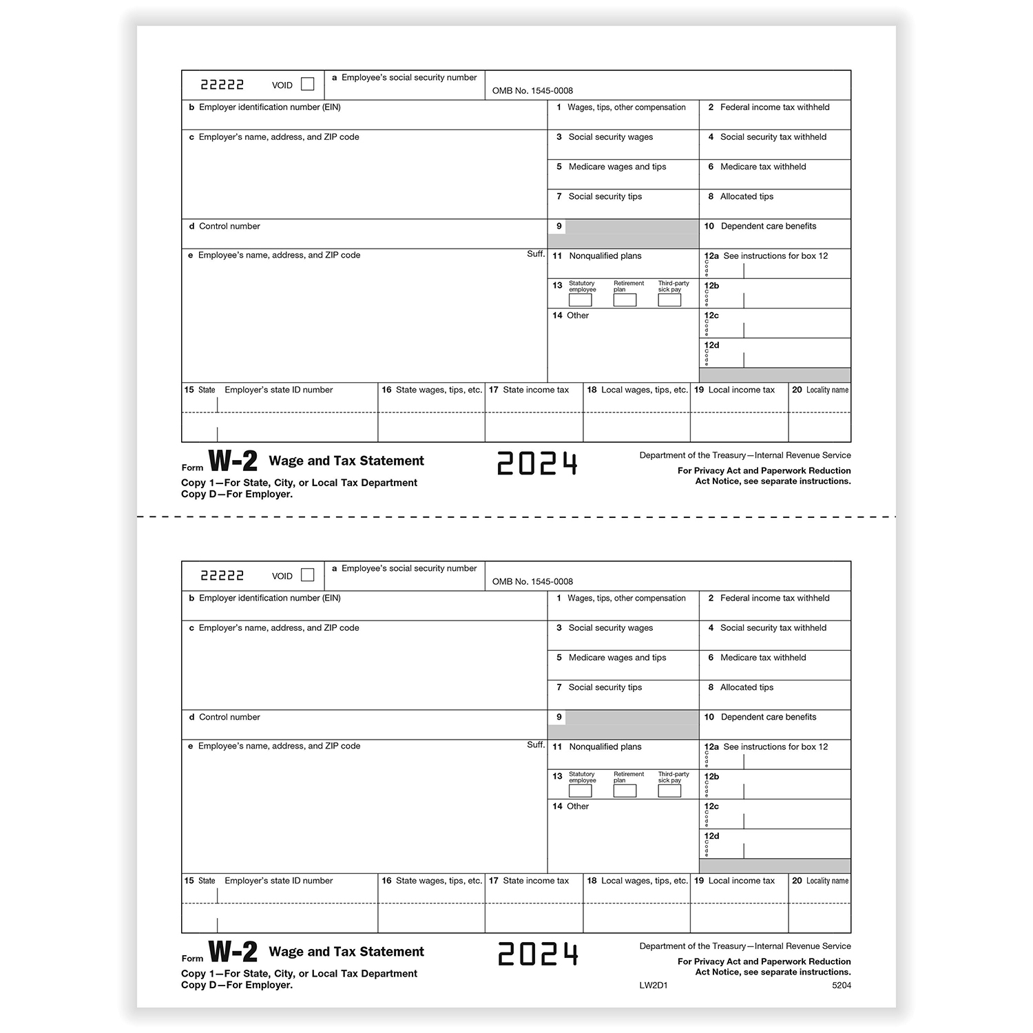 Employer W2 Copy D Formstax